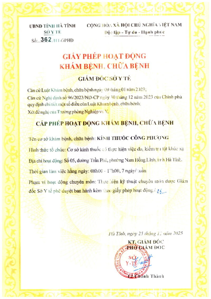 | 7 | 521/HT-GPHĐ | 04/12/2025 | Phòng khám chuyên khoa Nội Famicare Hà Tĩnh | |