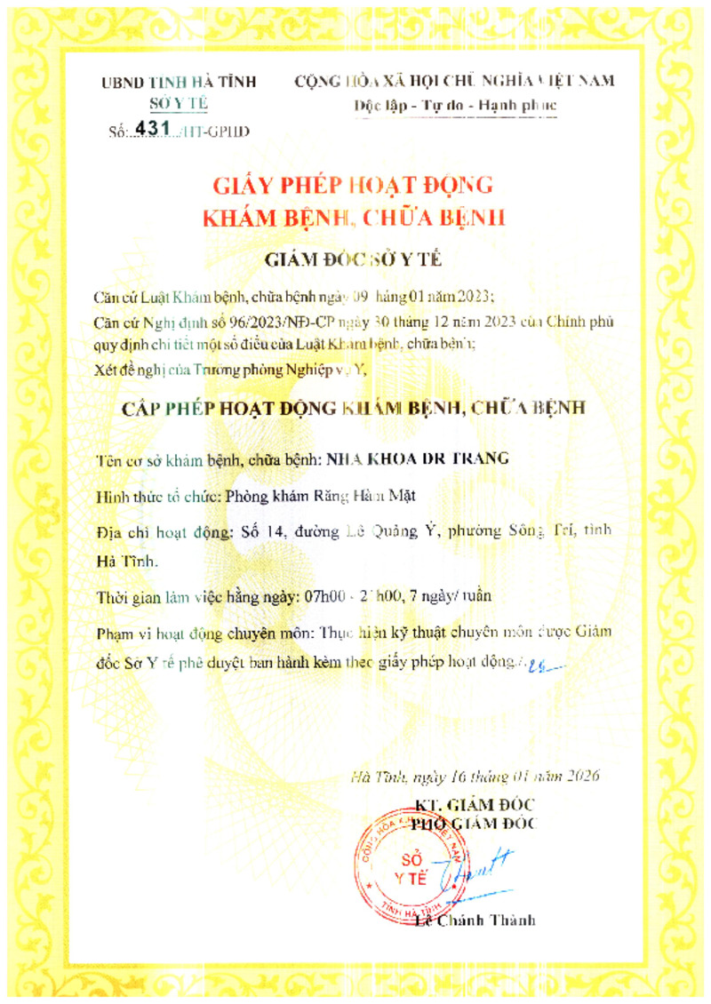 | 2 | 432/HT-GPHĐ | 16/01/2026 | Phòng khám Răng Hàm Mặt Nha khoa Hoàng Bông | |