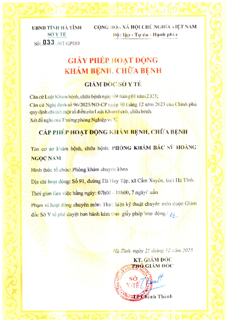 | 6 | 521/HT-GPHĐ | 04/12/2025 | Phòng khám chuyên khoa Nội Famicare Hà Tĩnh | |
