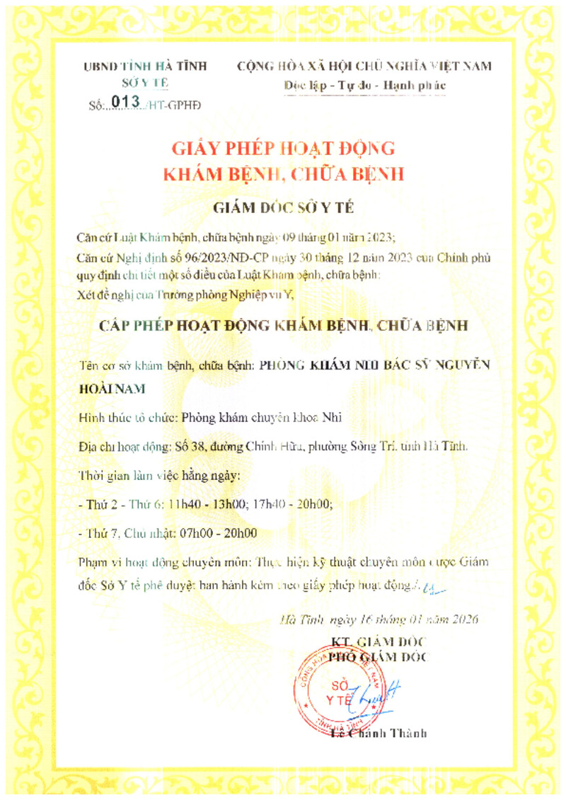| Tiêu đề văn bản | Phòng khám Nhi bác sỹ Nguyễn Hoài Nam | ||