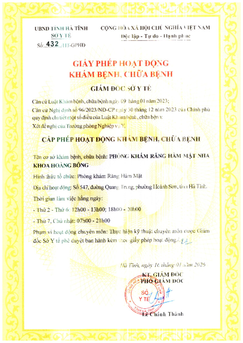 | Tiêu đề văn bản | Phòng khám Răng Hàm Mặt Nha khoa Hoàng Bông | ||