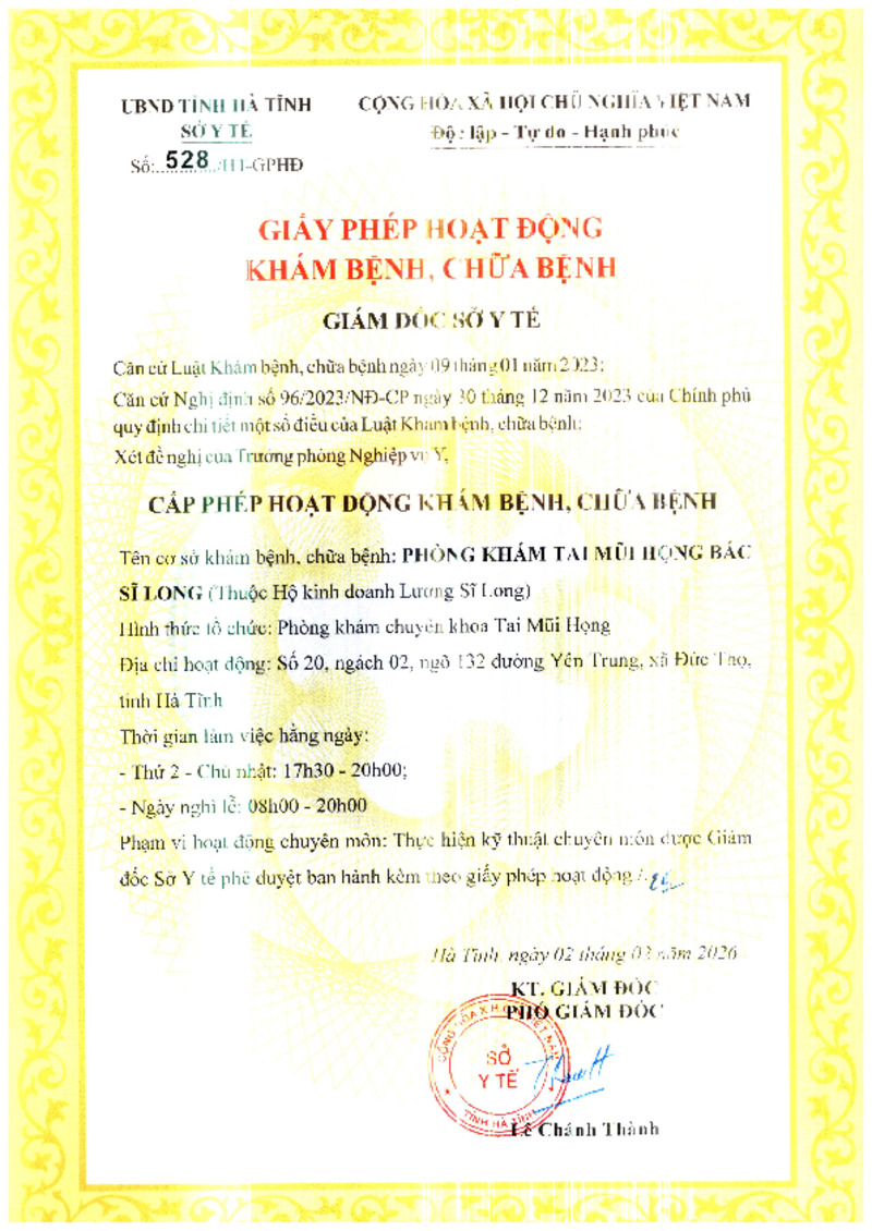 | 2 | 531/HT-GPHĐ | 10/02/2026 | Phòng khám đa khoa Medic Hà Tĩnh | |
