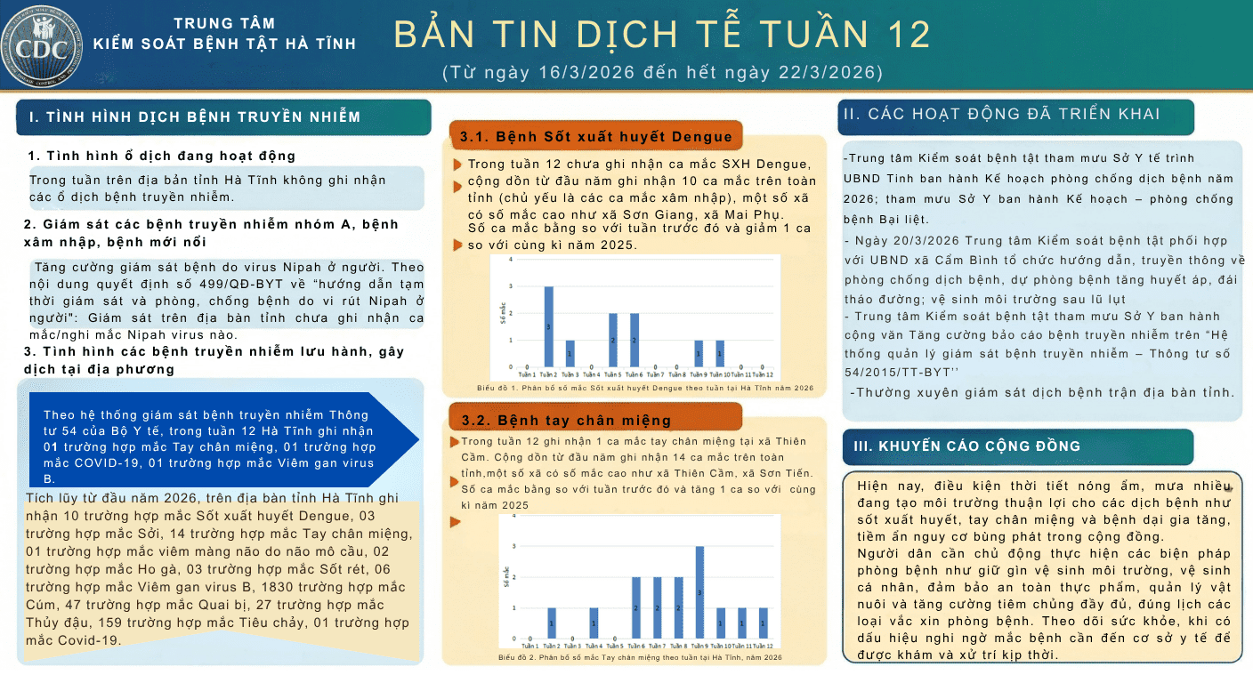 Bản tin dịch tễ tuần 12 (Từ ngày 16/3/2026 đến hết ngày 22/3/2026)