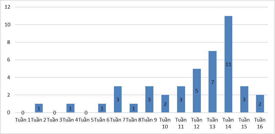 Số ca mắc tăng 4 ca so với tuần trước và tăng 15 ca so với cùng kì năm 2025.