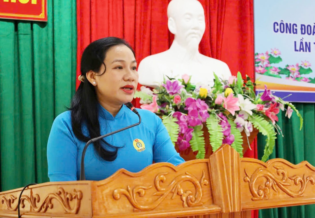 Đồng chí Phan Thị Mai Hoa -Phó Trưởng ban công đoàn khu kinh tế, LĐLĐ tỉnh phát biểu chỉ đạo Đại hội