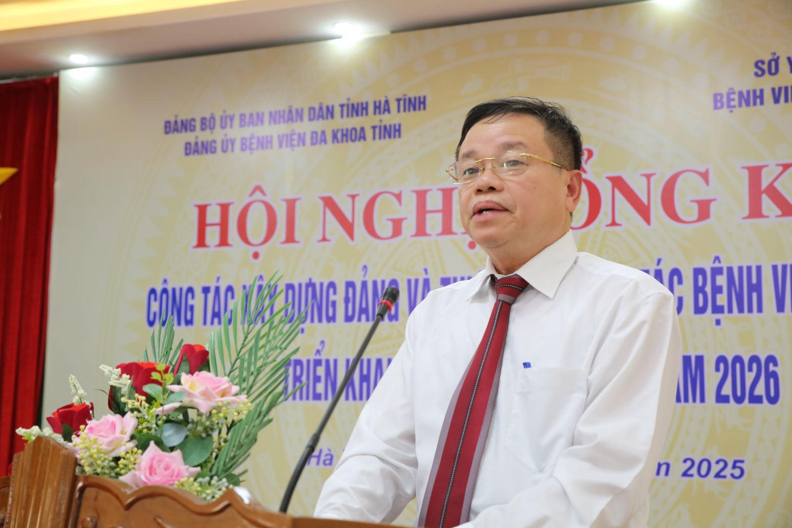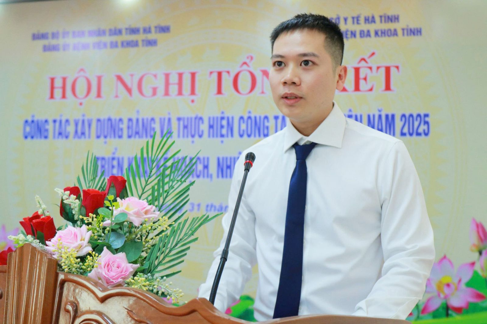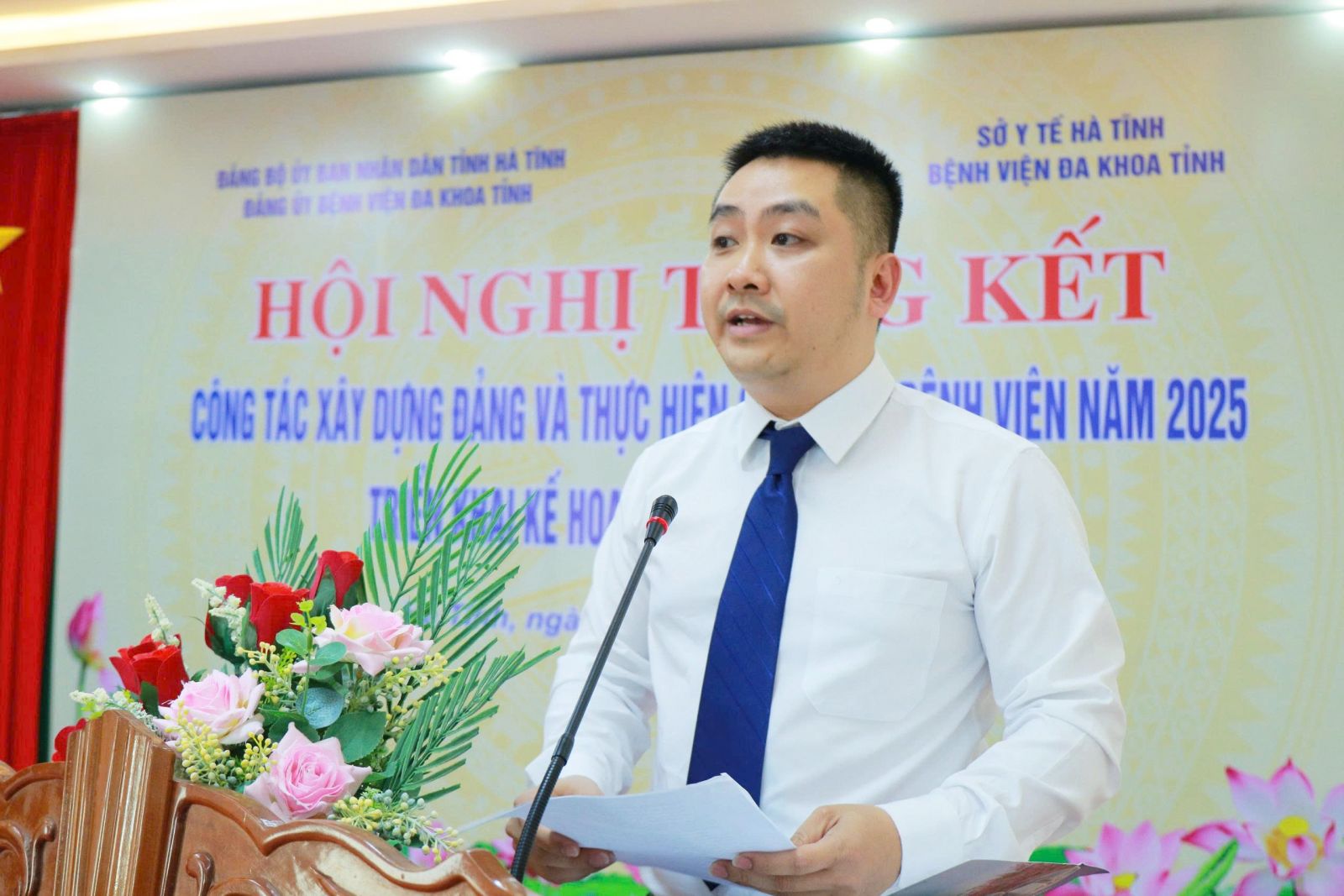 Giám đốc Bệnh viện Đa khoa tỉnh Hà Tĩnh Hoàng Quang Trung báo cáo công tác bệnh viện năm 2025, triển khai kế hoạch, nhiệm vụ năm 2026.