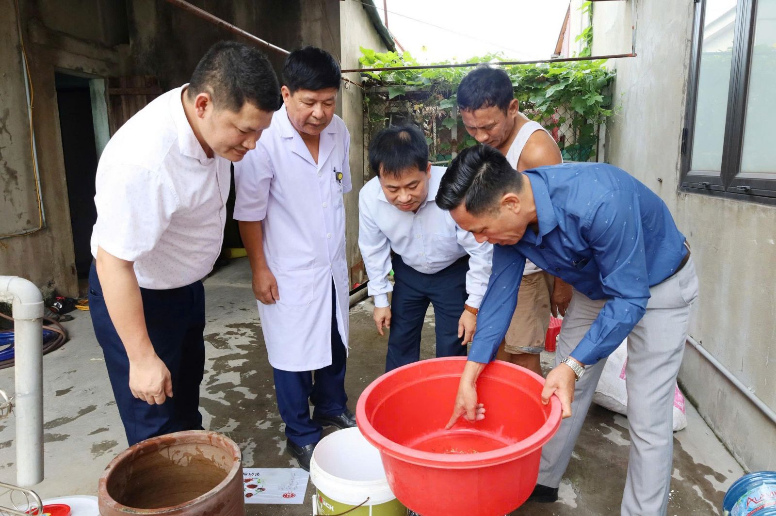 Ngành Y tế tăng cường công tác phòng chống dịch bệnh. Ảnh lãnh đạo CDC giám sát bọ gậy sốt xuất huyết tại phường Hoành Sơn