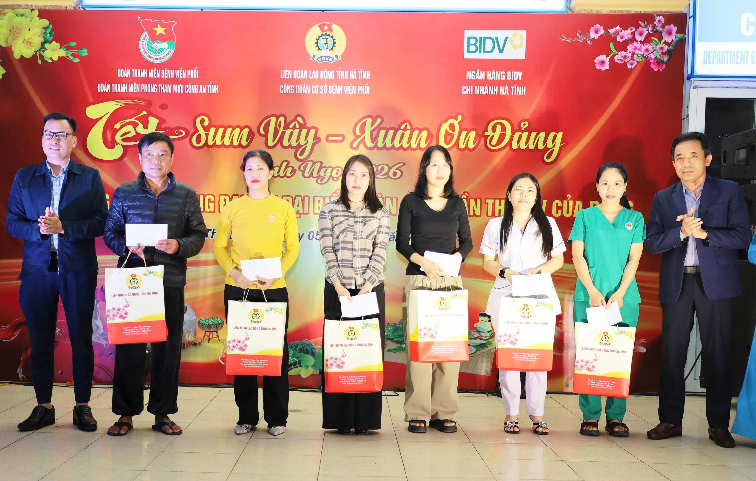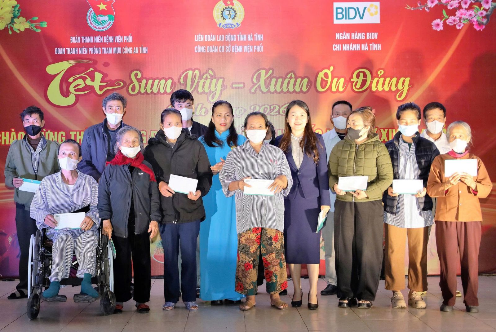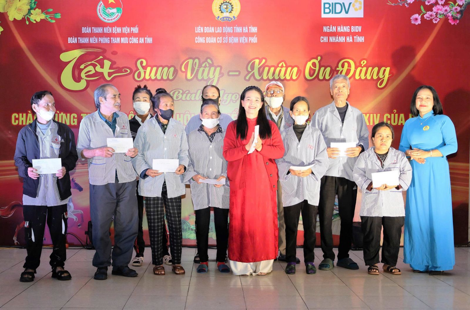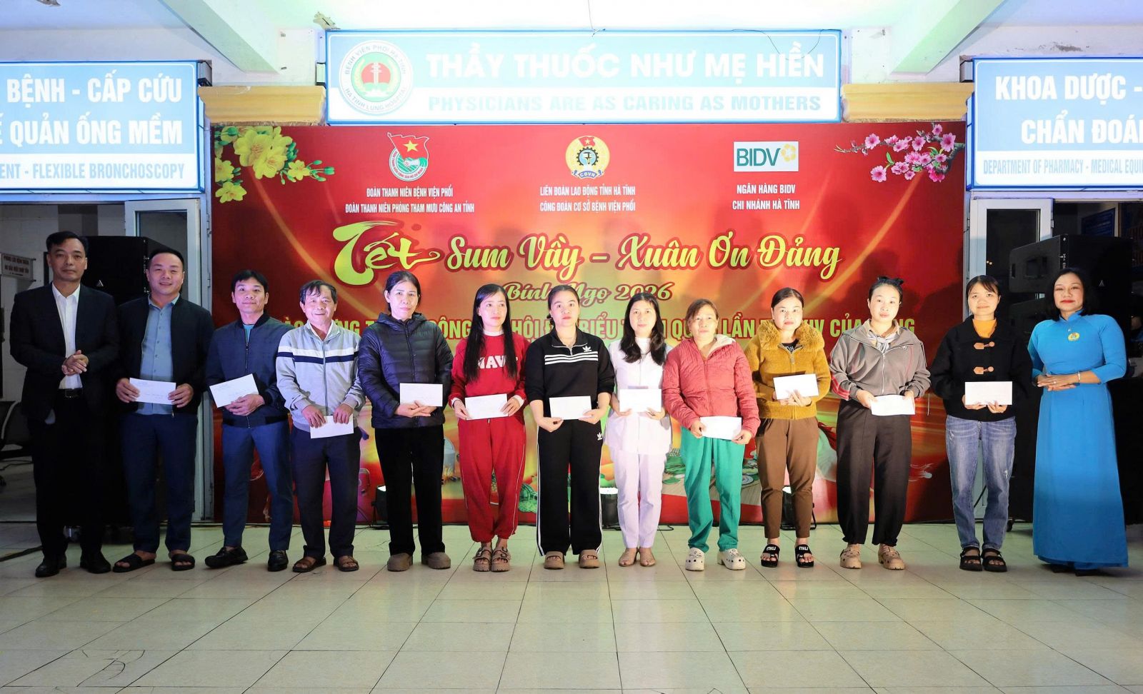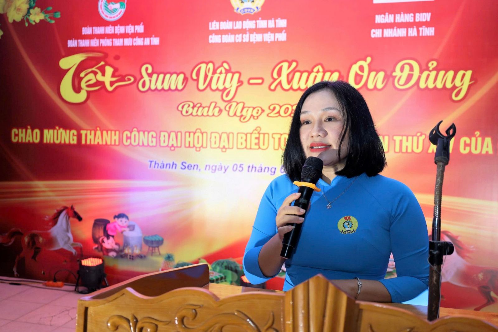 Phát biểu tại chương trình, bác sĩ Lê Tố Nga – Phó Giám đốc, Chủ tịch Công đoàn cơ sở Bệnh viện Phổi Hà Tĩnh nhấn mạnh: đây là hoạt động giàu ý nghĩa nhân văn, góp phần động viên, chia sẻ khó khăn với bệnh nhân nghèo và cán bộ, viên chức có hoàn cảnh đặc biệt, giúp mọi người đón Tết cổ truyền trong không khí ấm áp, nghĩa tình; đồng thời thể hiện sự tri ân đối với các doanh nghiệp, nhà hảo tâm đã luôn đồng hành cùng bệnh viện trong công tác an sinh xã hội, với tinh thần “không ai bị bỏ lại phía sau”