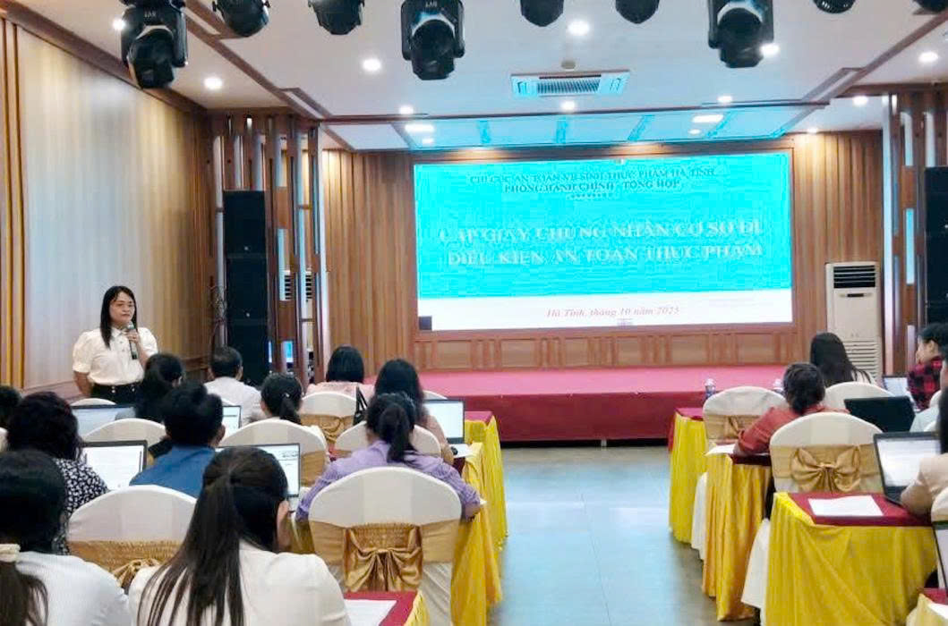 Giảng viên Chi cục An toàn vệ sinh thực phẩm Hà Tĩnh phổ biến nhiều nội dung trọng tâm cho học viên