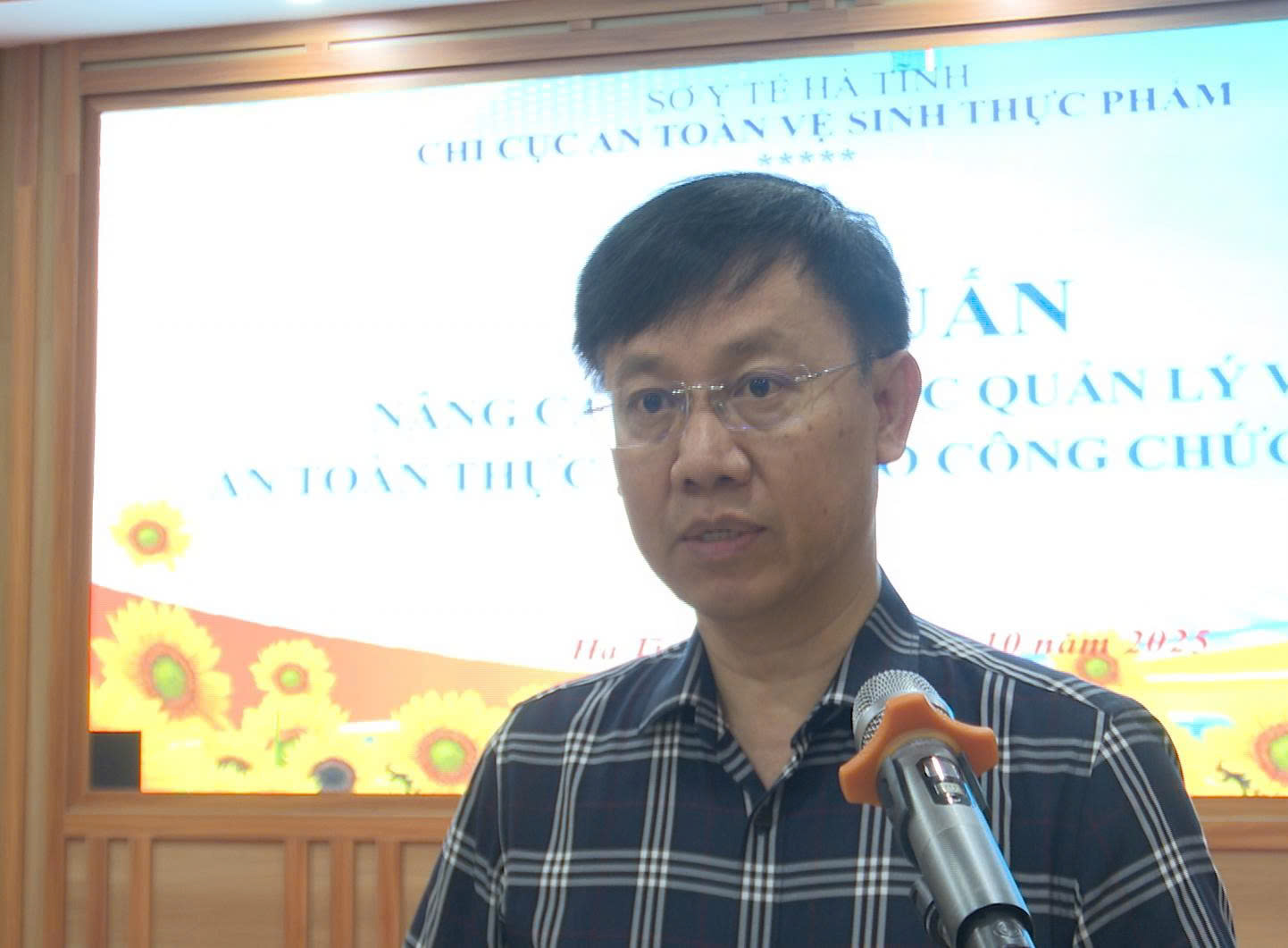 Sáng 14/10, Chi cục An toàn vệ sinh thực phẩm (ATVSTP) Hà Tĩnh tổ chức tập huấn nâng cao năng lực quản lý nhà nước về an toàn thực phẩm cho hơn 70 cán bộ, công chức phụ trách lĩnh vực y tế tại các xã, phường, cùng cán bộ của Chi cục ATVSTP tỉnh. Dự và chỉ đạo lớp tập huấn có ThS. Bùi Quốc Hùng – Phó Giám đốc Sở Y tế Hà Tĩnh.