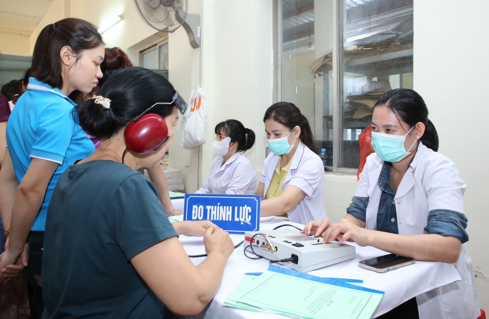 Tại đây, các y, bác sỹ đã tiến hành khám với nhiều danh mục như: khám lâm sàng tổng quát, đo huyết áp, khám chuyên khoa sản, mắt, tai mũi họng, đo chức năng hô hấp, xét nghiệm máu, chụp X-quang, siêu âm… và một số xét nghiệm chuyên sâu khác liên quan đến các yếu tố nguy cơ nghề nghiệp. Bên cạnh đó, người lao động còn được tư vấn về chế độ dinh dưỡng, thói quen sinh hoạt lành mạnh, cũng như các biện pháp phòng tránh bệnh nghề nghiệp thường gặp.