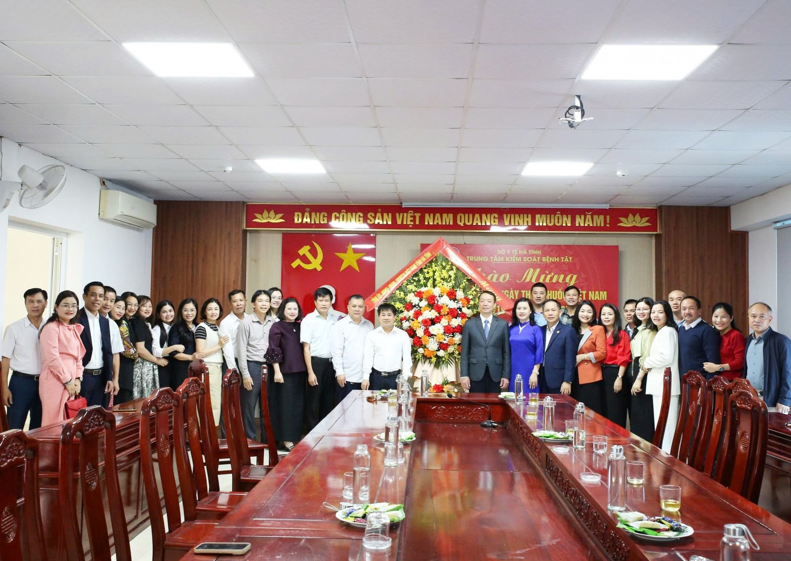 Đoàn công tác tặng hoa chúc mừng Trung tâm Kiểm soát bệnh tật Hà Tĩnh.