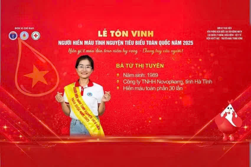 Chị Tuyên là cá nhân duy nhất của Hà Tĩnh được tôn vinh người hiến máu tình nguyện tiêu biểu toàn quốc năm 2025