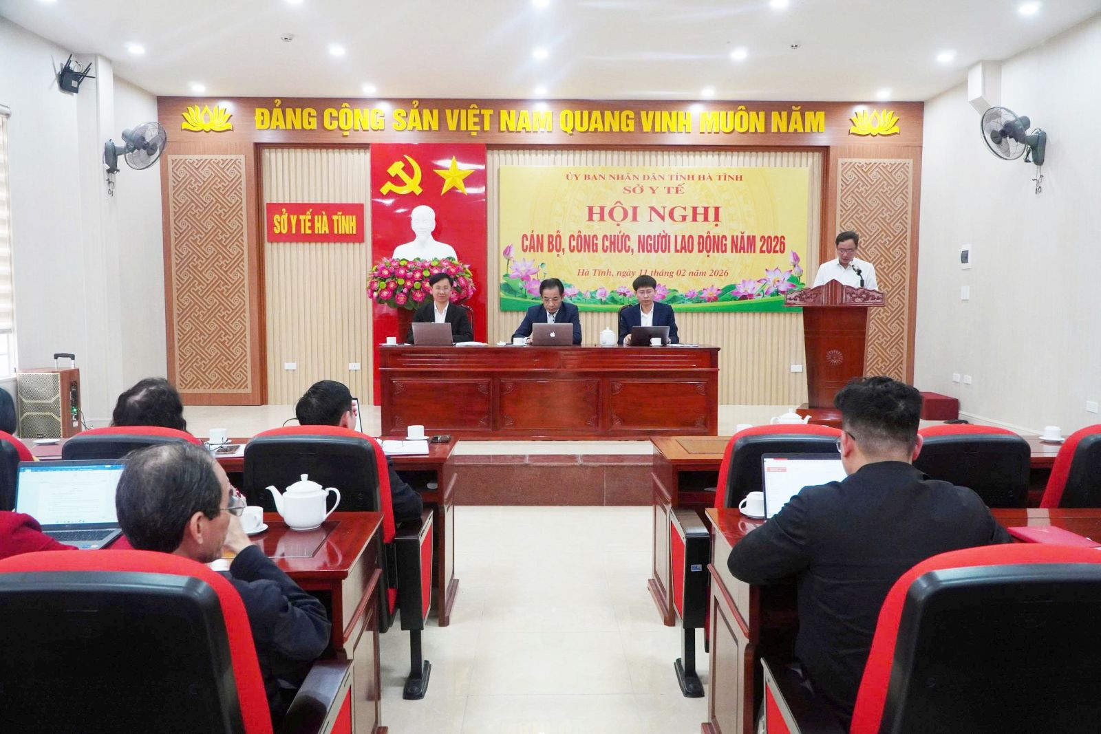 Chiều 11/2/2026, Sở Y tế Hà Tĩnh tổ chức Hội nghị cán bộ, công chức, người lao động năm 2026. Bác sĩ Lê Chánh Thành và bác sĩ Bùi Quốc Hùng – Phó Giám đốc Sở Y tế đồng chủ trì hội nghị.
