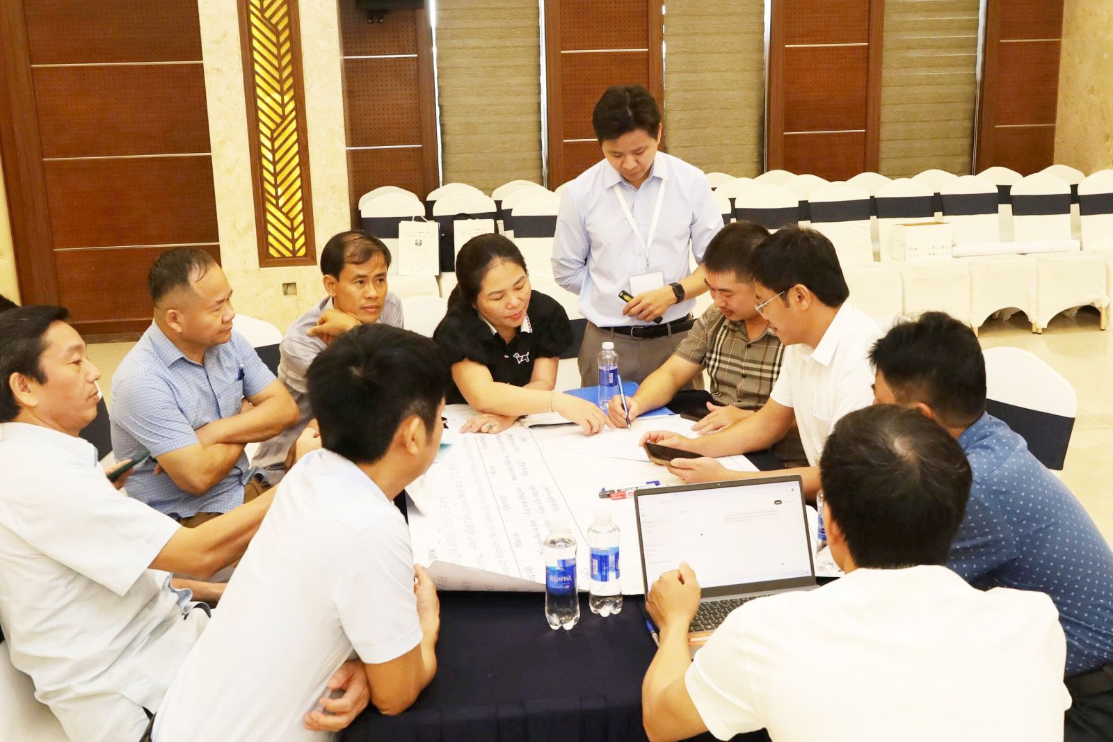 Sau hội thảo, nhóm nghiên cứu RESHAPE đã tổ chức tập huấn về “Lập bản đồ hệ thống, phân tích rủi ro và tác động của thiên tai đối với cơ sở y tế” cho các thành viên thuộc trung tâm y tế, trạm y tế, UBND các xã Hương Sơn, Hương Khê. Các học viên được hướng dẫn phương pháp phân tích chuỗi giá trị bằng công cụ SIPOC, xác định “điểm nghẽn” thông qua sơ đồ xương cá và tích hợp kết quả vào đánh giá rủi ro.