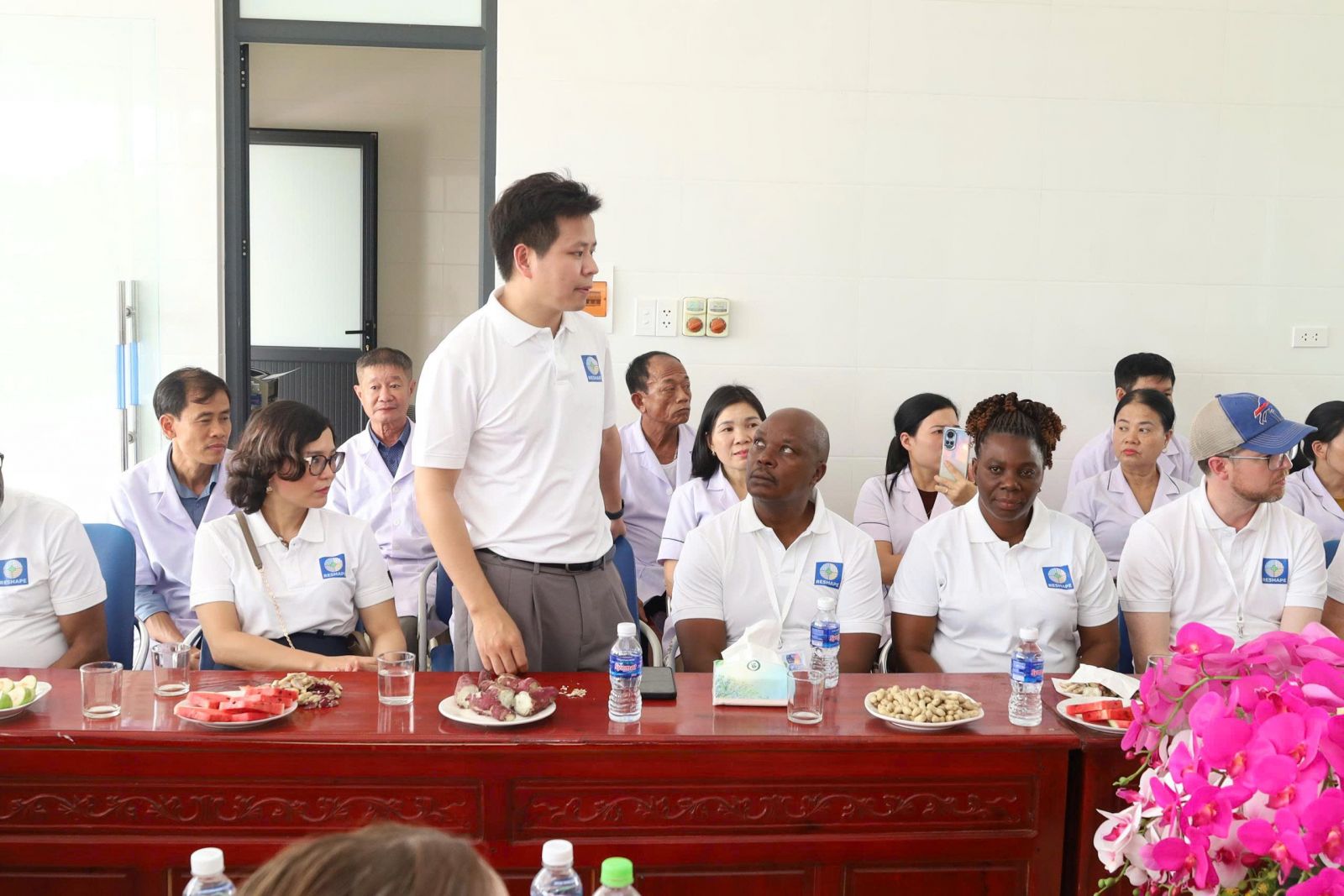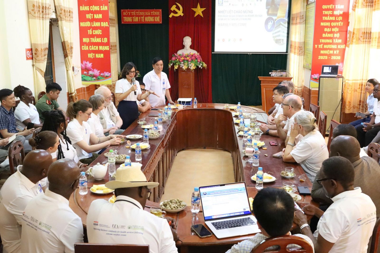 Tham dự có GS. Paul Hunter (Đại học East Anglia, Vương quốc Anh) - Giám đốc Nghiên cứu RESHAPE; 21 đại biểu quốc tế đến từ 4 trường đại học ở Anh Quốc và các trường đại học, viện nghiên cứu ở Malawi, Tanzania, Uganda, cùng nhóm nghiên cứu của Trường Đại học Y tế công cộng; lãnh đạo Sở Y tế, CDC Hà Tĩnh và gần 40 thành viên đến từ trung tâm y tế, trạm y tế, UBND các xã Hương Sơn, Hương Khê.