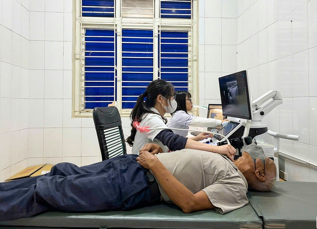 Thạc sỹ, bác sỹ nội trú Nguyễn Trúc Linh (chuyên ngành chẩn đoán hình ảnh) siêu âm cho bệnh nhân tại Trung tâm Y tế Thạch Hà