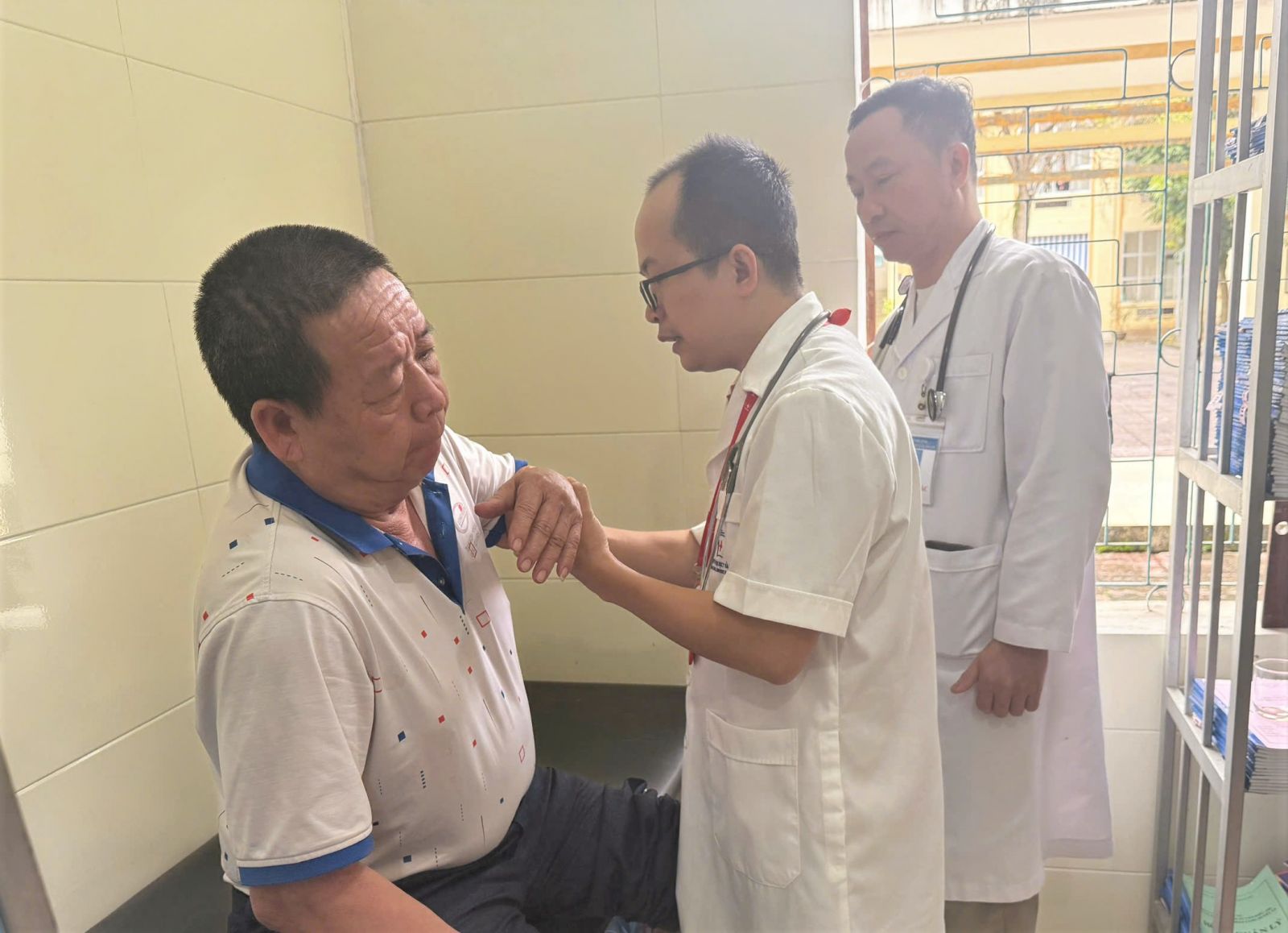Bác sỹ CKII Trịnh Huy Bình (chuyên ngành cơ xương khớp) kiểm tra sức khỏe bệnh nhân tại Trung tâm Y tế Hương Khê