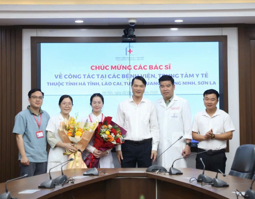Các bác sỹ sẽ công tác tại các đơn vị trong thời gian 2 tháng, kể từ ngày 02/3/2026 đến 29/4/2026. Sau khi kết thúc đợt này, Bệnh viện Đại học Y Hà Nội tiếp tục luân phiên cử các bác sỹ ở các lĩnh vực khác về công tác.