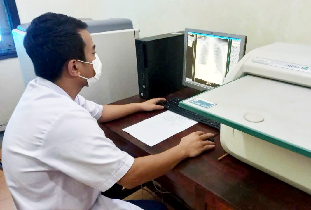 Cán bộ y tế Bệnh viện Phổi Hà Tĩnh kiểm tra tổn thương phổi cho bệnh nhân COPD có tiền sử hút thuốc lá