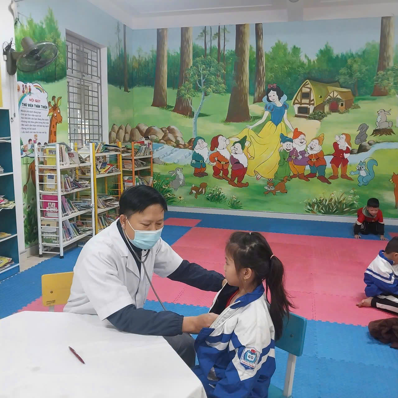 Các trẻ trước khi uống thuốc tẩy giun được bác sĩ khám sức khỏe(ảnh chụp tại trường mầm non Nguyễn Du Plus Hà Tĩnh)