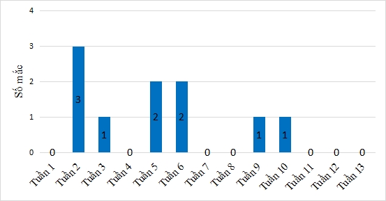 Số ca mắc bằng so với tuần trước đó và giảm 2 ca so với cùng kì năm 2025.