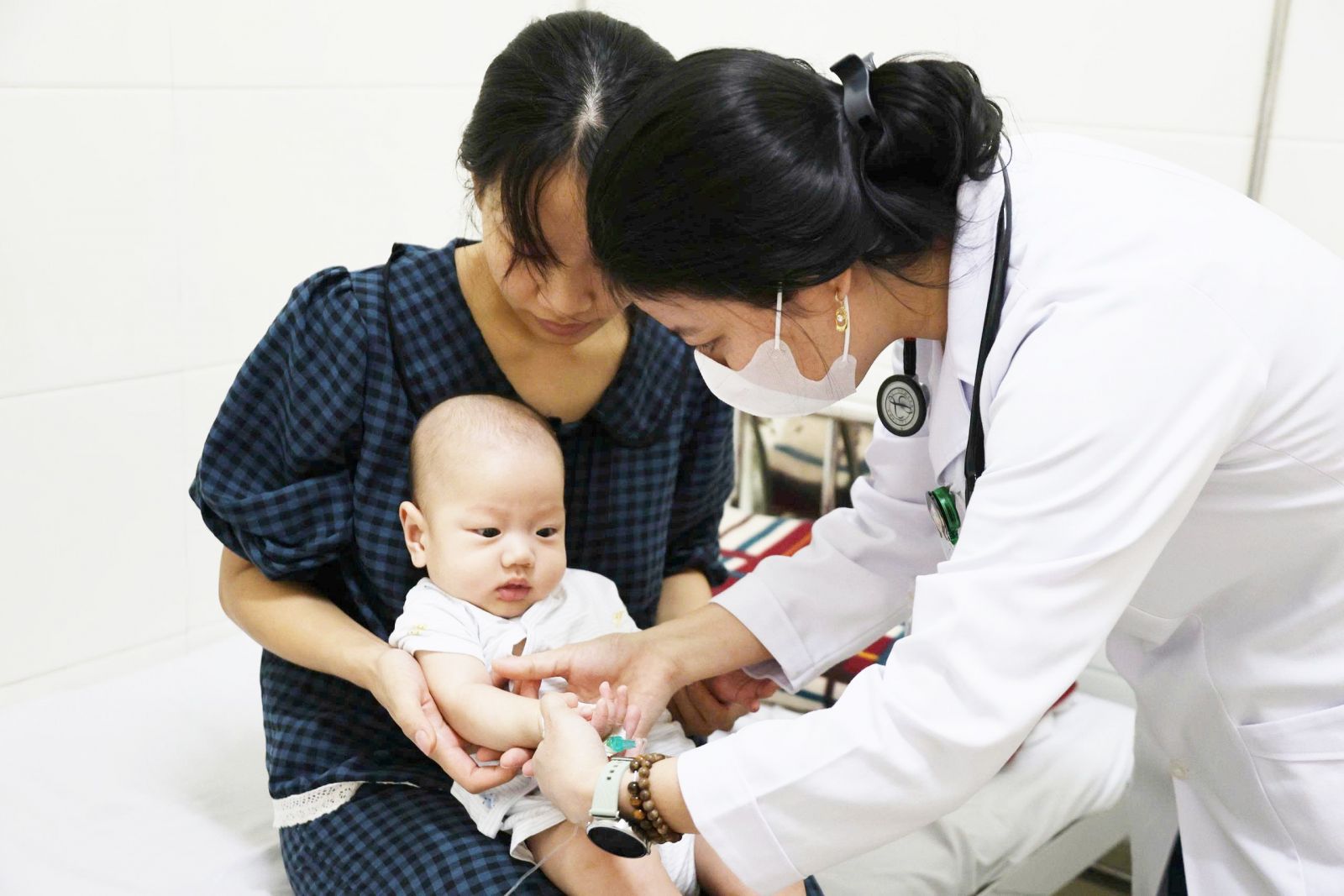 Khám, theo dõi sức khỏe bệnh nhân tay chân miệng tại Khoa nhi, BVĐK tỉnh Hà Tĩnh