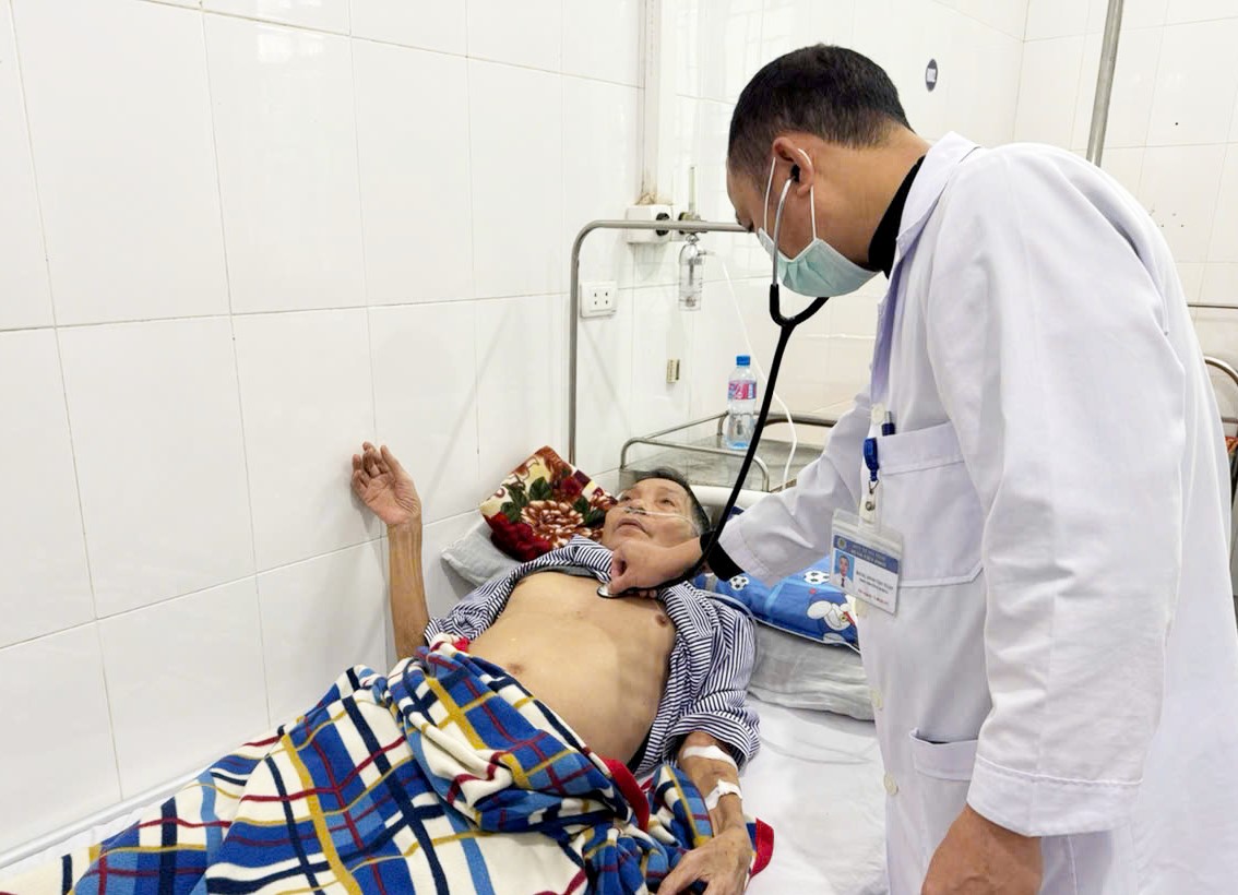 Bác sĩ bệnh viện Phổi Hà Tĩnh khám, kiểm tra sức khỏe bệnh nhân COPD đang điều trị nội trú