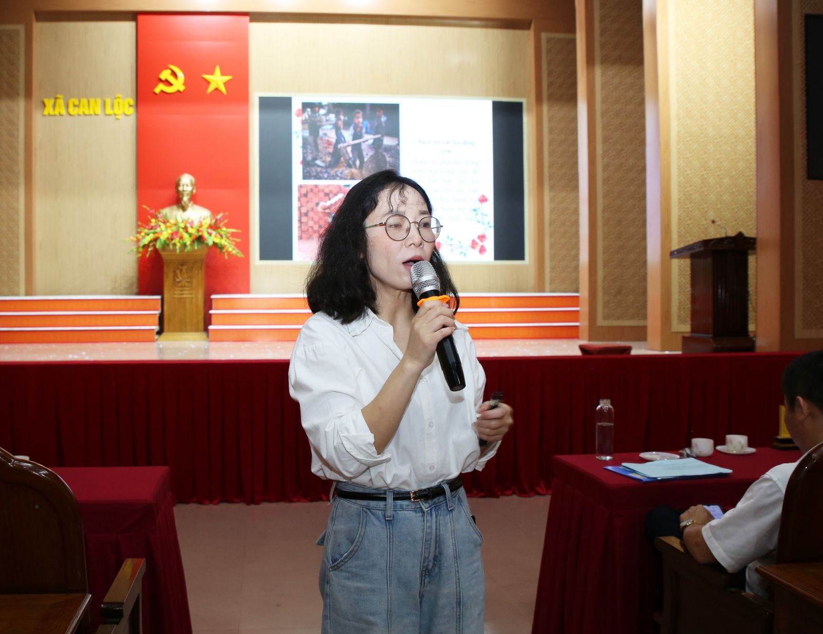 Cán bộ Trung tâm Công tác xã hội - Giáo dục nghề nghiệp cho người khuyết tật tỉnh trình bày chuyên đề phòng chống xâm hại trẻ em..