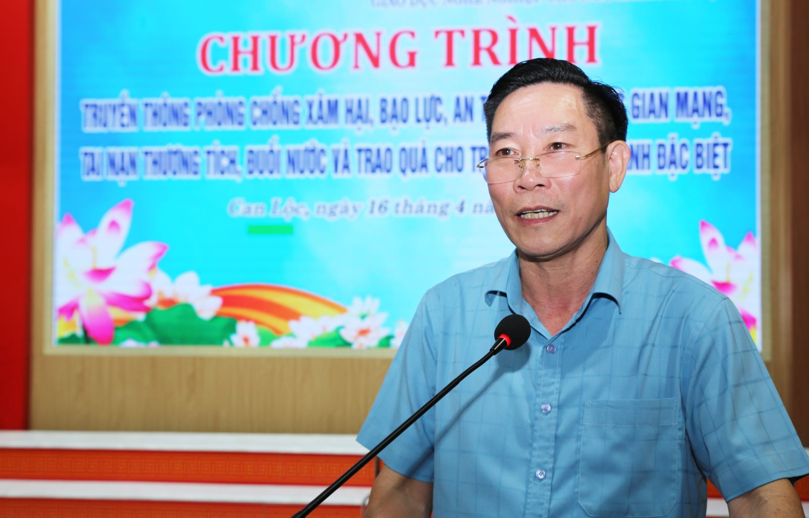 Sáng 16/4, Trung tâm Công tác xã hội - Giáo dục nghề nghiệp cho người khuyết tật (Sở Y tế Hà Tĩnh) phối hợp với xã Can Lộc tổ chức chương trình truyền thông về phòng, tránh xâm hại trẻ em, bạo lực học đường, an toàn trên không gian mạng và phòng chống tai nạn thương tích, đuối nước cho hơn 400 học sinh Trường Tiểu học Ngô Đức Kế