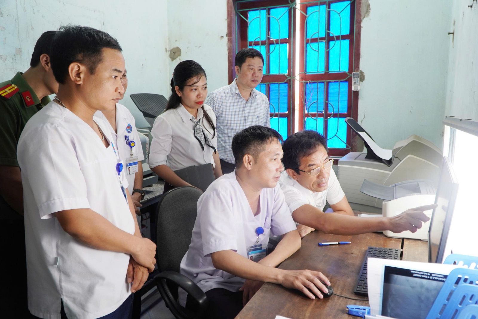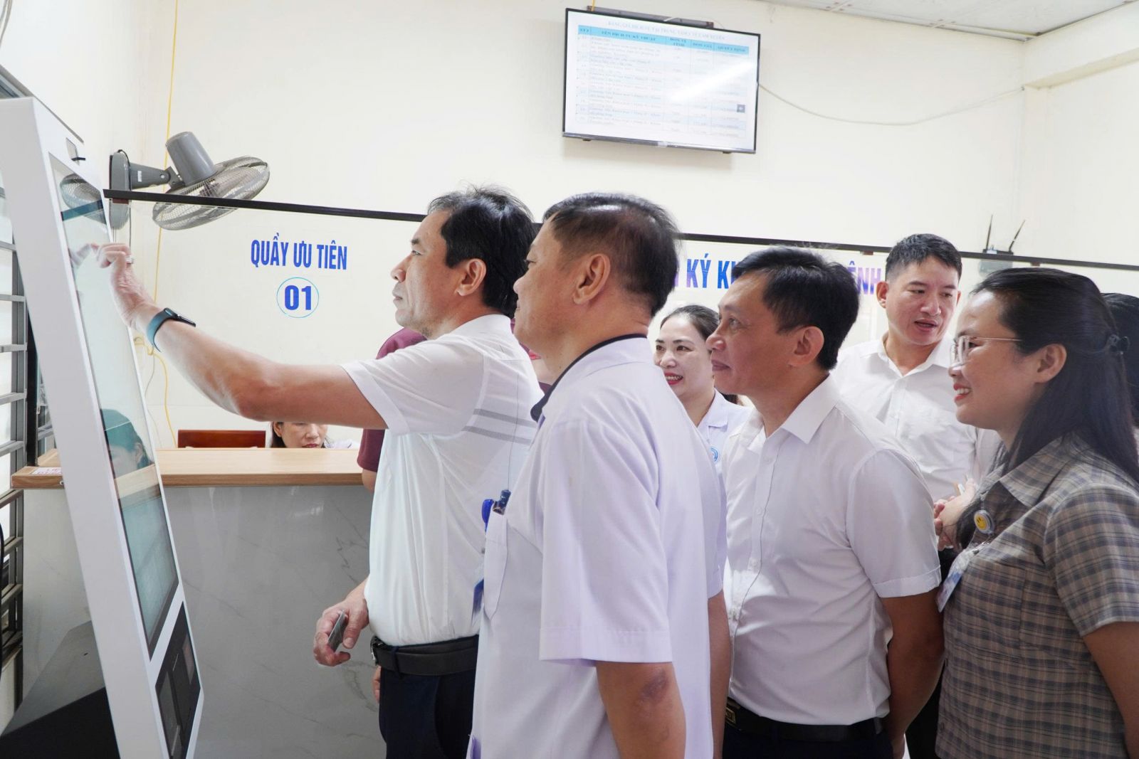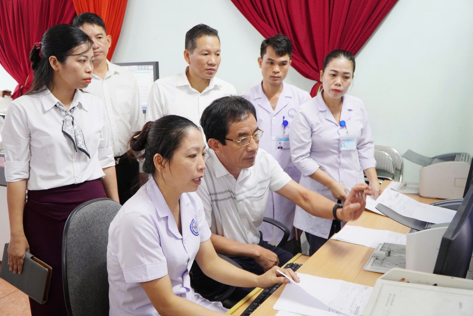 Đoàn công tác Sở Y tế và các đại biểu tham quan và kiểm tra việc thực hiện EMR tại các khoa, phòng.