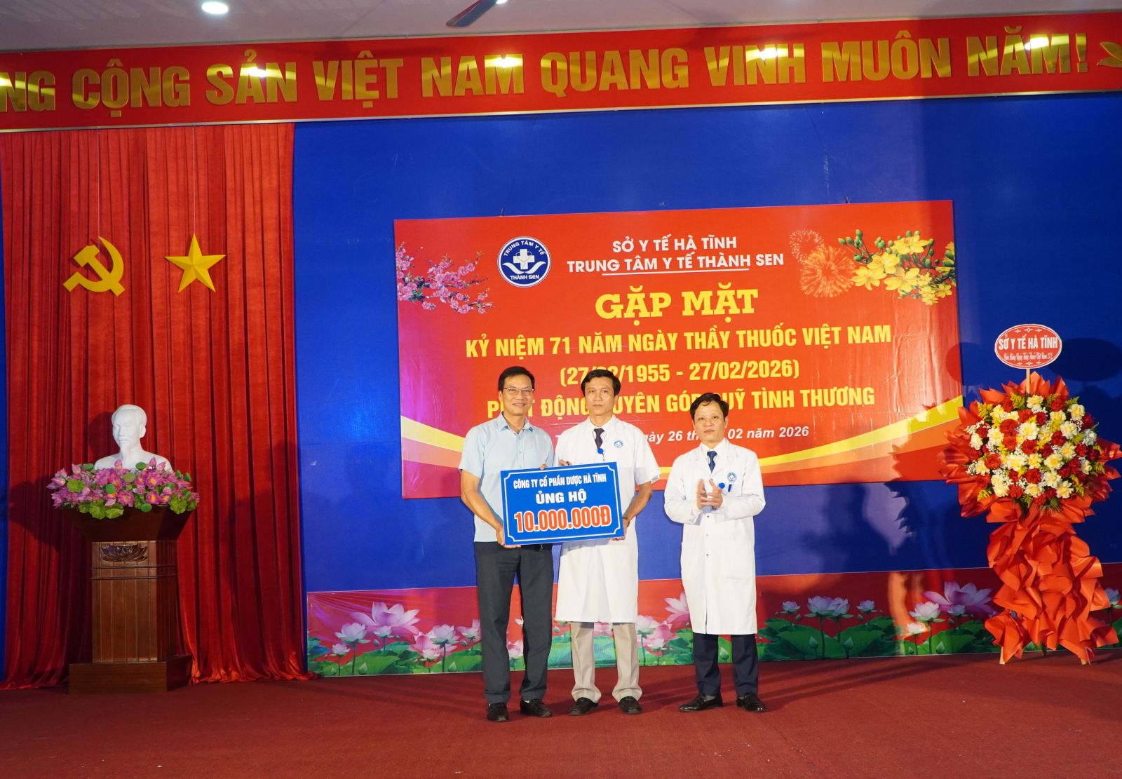Chiều 26/2, Trung tâm Y tế Thành Sen tổ chức gặp mặt kỷ niệm 71 năm Ngày Thầy thuốc Việt Nam (27/2/1955 – 27/2/2026) và phát động Quỹ tình thương, với sự tham dự của đông đảo cán bộ, viên chức, người lao động đang công tác và các thế hệ cán bộ hưu trí của đơn vị.