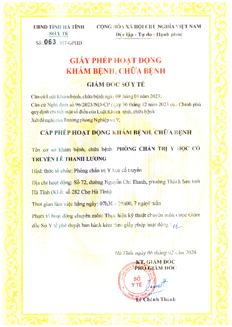 | 7 | 529/HT-GPHĐ | 02/02/2026 | Phòng Chẩn trị YHCT Lê Thị Tính | |