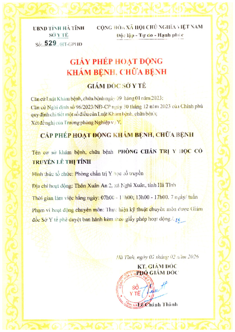 | 7 | 531/HT-GPHĐ | 10/02/2026 | Phòng khám đa khoa Medic Hà Tĩnh | |