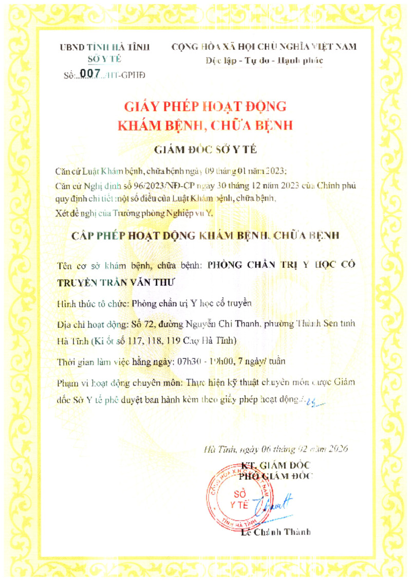 | 2 | 063/HT-GPHĐ | 06/02/2026 | Phòng Chẩn trị YHCT Lê Thanh Lương | |
