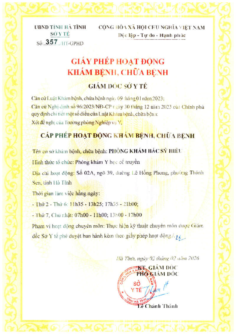 | 3 | 527/HT-GPHĐ | 02/02/2026 | Phòng Chẩn trị YHCT Thuật Hiền | |