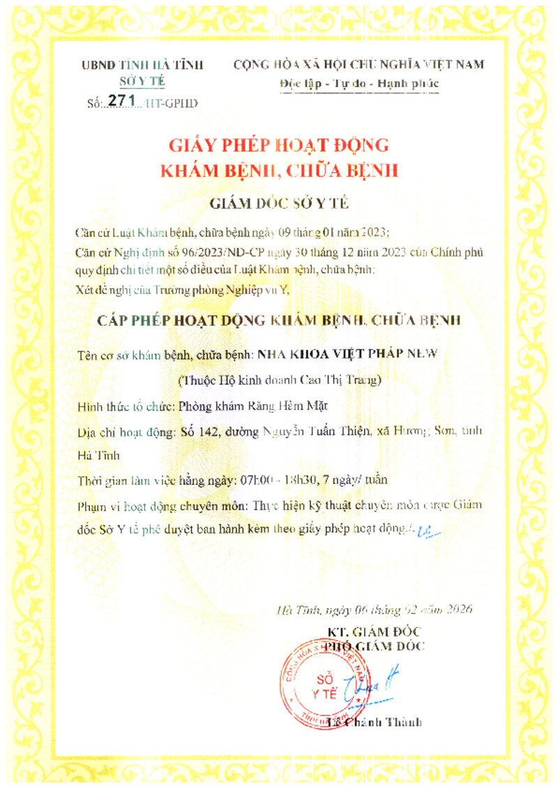 | 1 | 530/HT-GPHĐ | 06/02/2026 | Phòng khám Răng Hàm Mặt Hoàng Hải | |