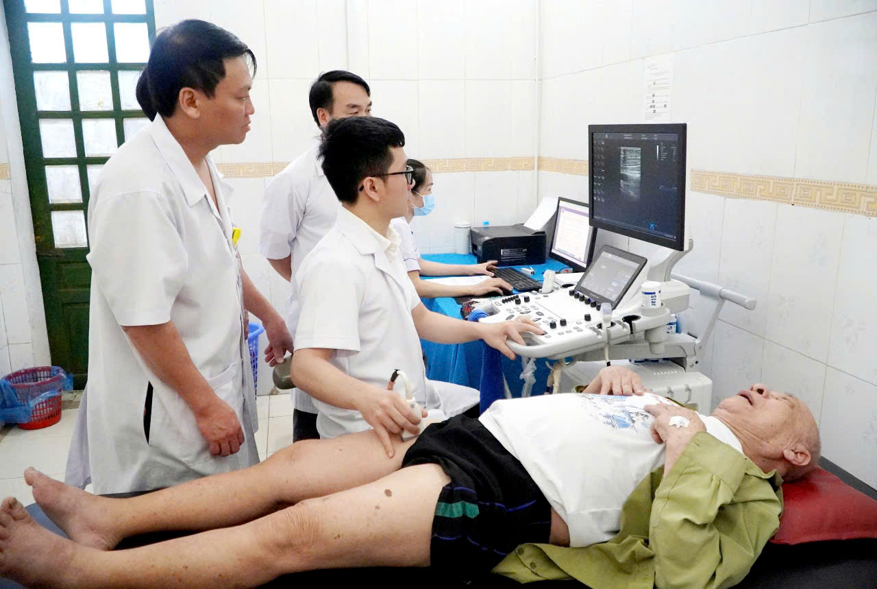 Bác sỹ Bệnh viện Đại học Y Hà Nội siêu âm cho bệnh nhân tại Trung tâm Y tế Hương Khê