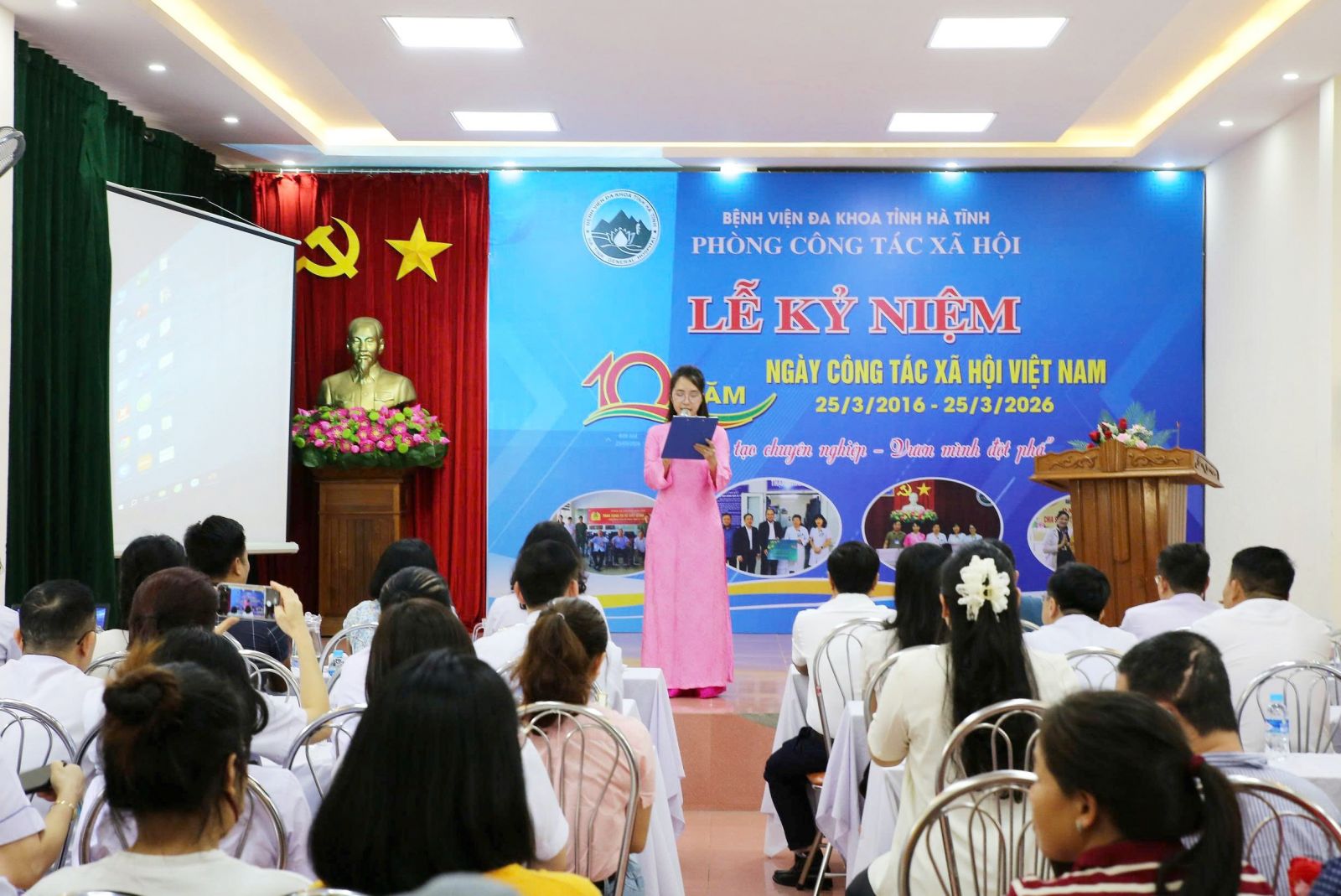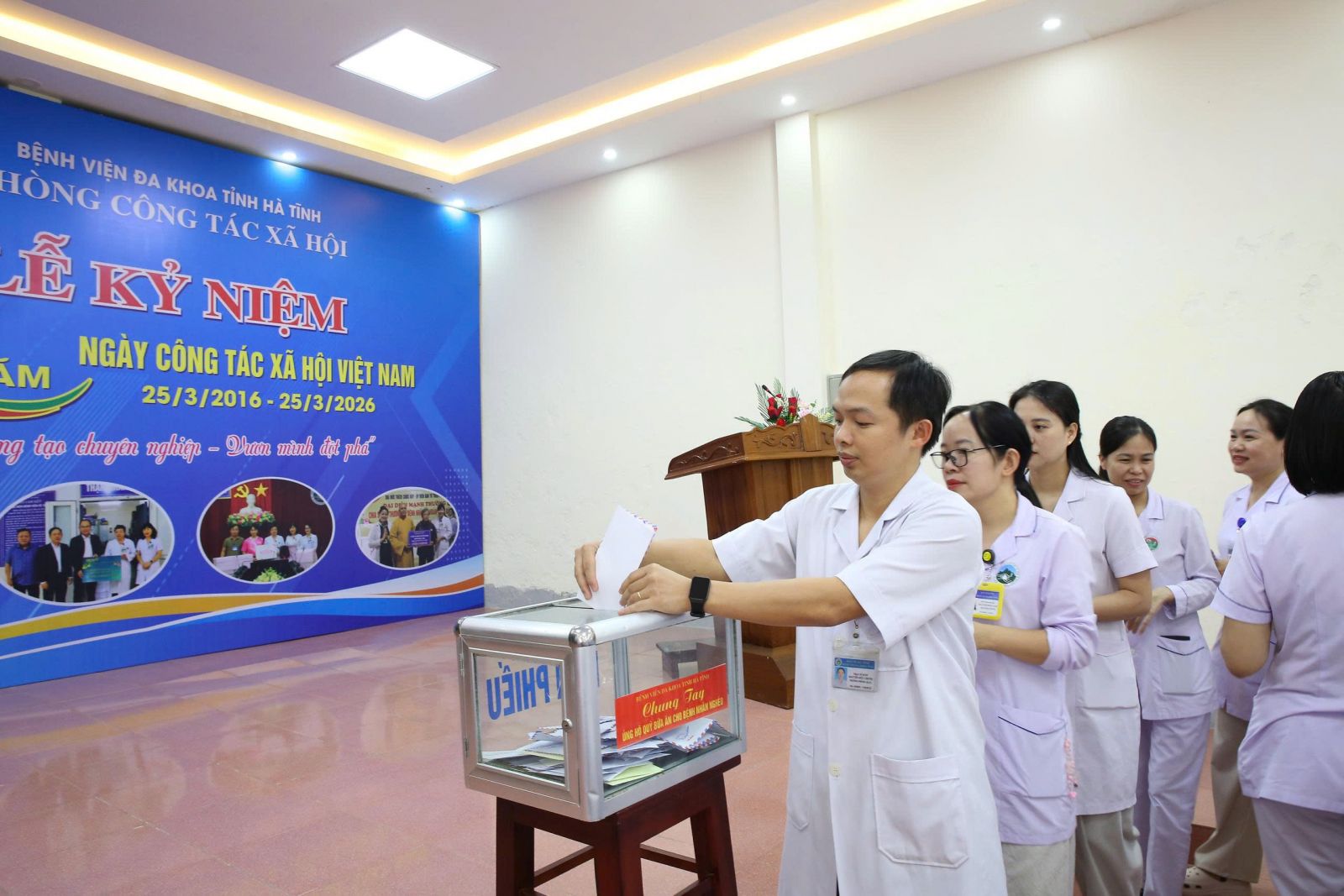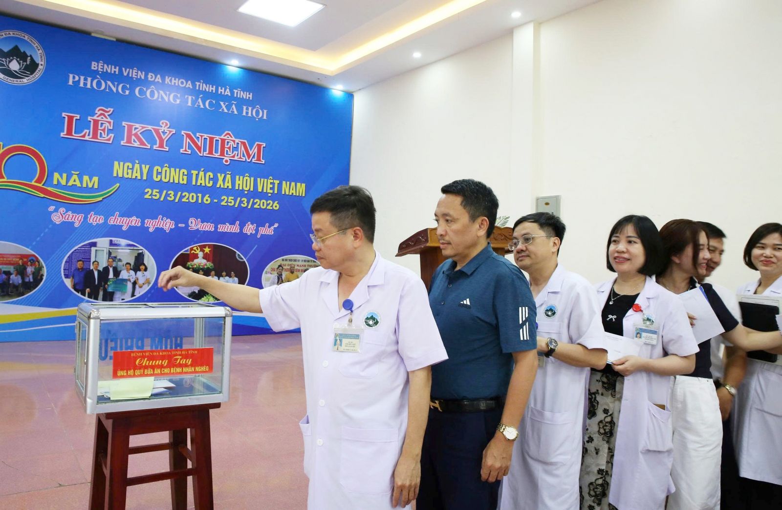 Sáng 25/3, Bệnh viện Đa khoa tỉnh Hà Tĩnh tổ chức lễ kỷ niệm 10 năm Ngày Công tác xã hội Việt Nam (25/3/2016 – 25/3/2026). Dự lễ kỷ niệm có gần 100 đại biểu là cán bộ y tế, các tổ chức, cá nhân, mạnh thường quân và bệnh nhân có hoàn cảnh khó khăn đang điều trị tại bệnh viện.
