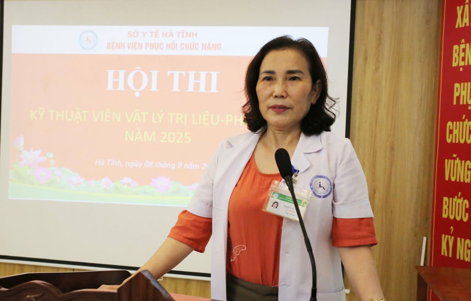 Bác sỹ Nguyễn Thị Diện, Giám đốc Bệnh viện Phục hồi chức năng Hà Tĩnh cho biết: Cuộc thi lần này nhằm đánh giá năng lực chuyên môn, tay nghề và kiến thức thực tiễn của đội ngũ Kỹ thuật viên Vật lý trị liệu – Phục hồi chức năng tại đơn vị.