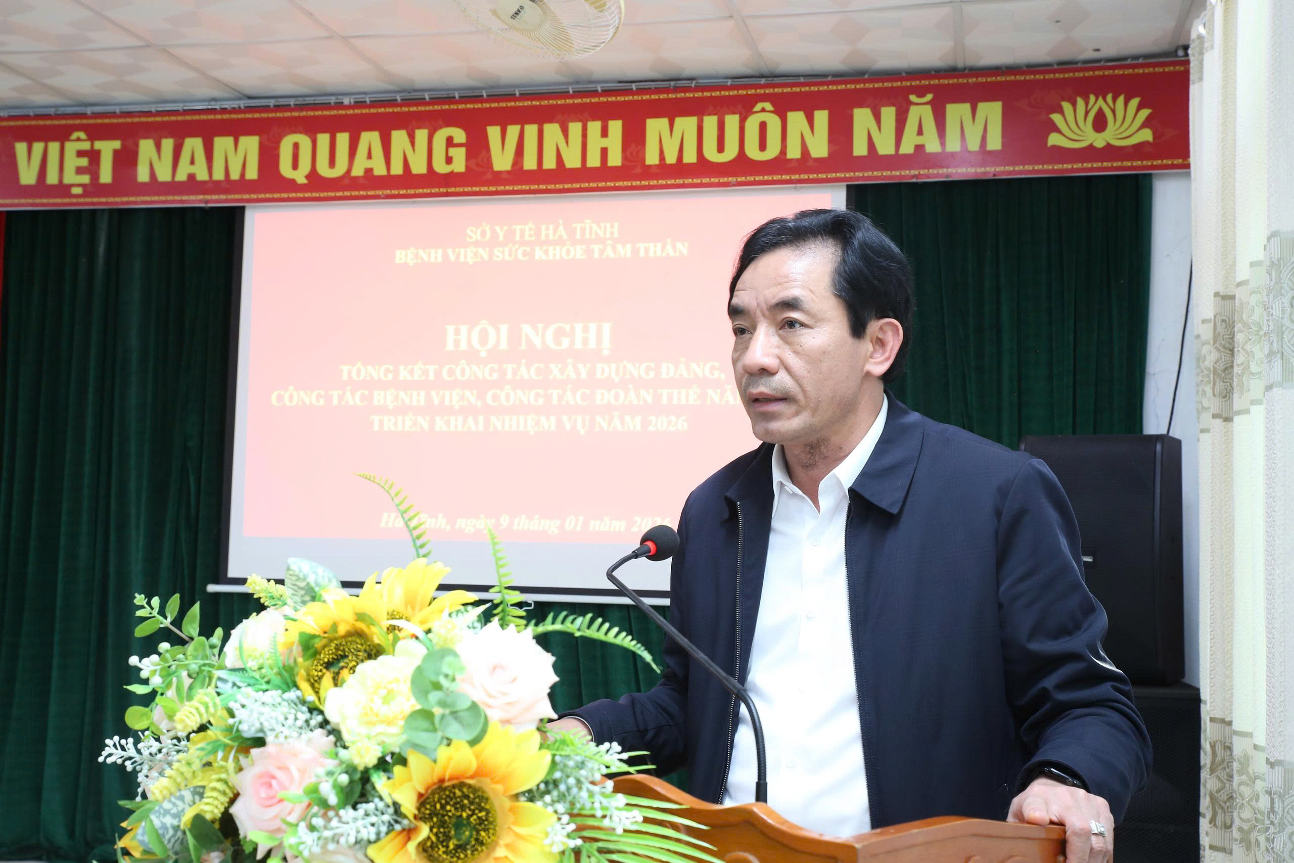 Chiều ngày 9/1, Bệnh viện Sức khỏe Tâm thần Hà Tĩnh tổ chức hội nghị tổng kết công tác xây dựng Đảng, công tác chuyên môn, công tác đoàn thể năm 2025 và triển khai nhiệm vụ năm 2026. Dự và chỉ đạo Hội nghị có Bác sỹ Lê Chánh Thành - Phó Giám đốc Sở Y tế Hà Tĩnh.