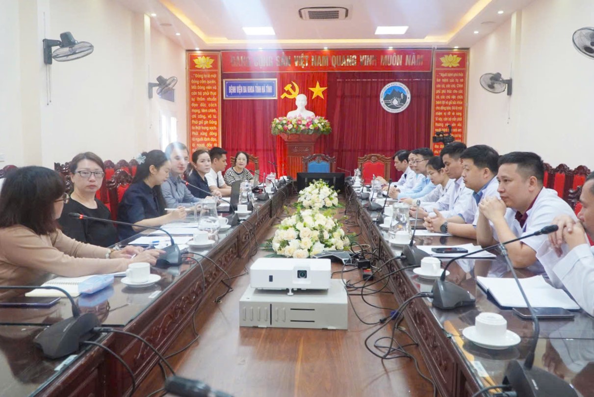 Tiếp và làm việc với đoàn có Bác sĩ Bùi Quốc Hùng – Phó Giám đốc Sở Y tế Hà Tĩnh cùng đại diện các phòng chuyên môn và nhóm giảng viên tuyến tỉnh đến từ các cơ sở y tế. Đoàn công tác do bà Nguyễn Hồng Linh – Phó Giám đốc Trung tâm Phát triển Sức khỏe bền vững (VietHealth) dẫn đầu.
