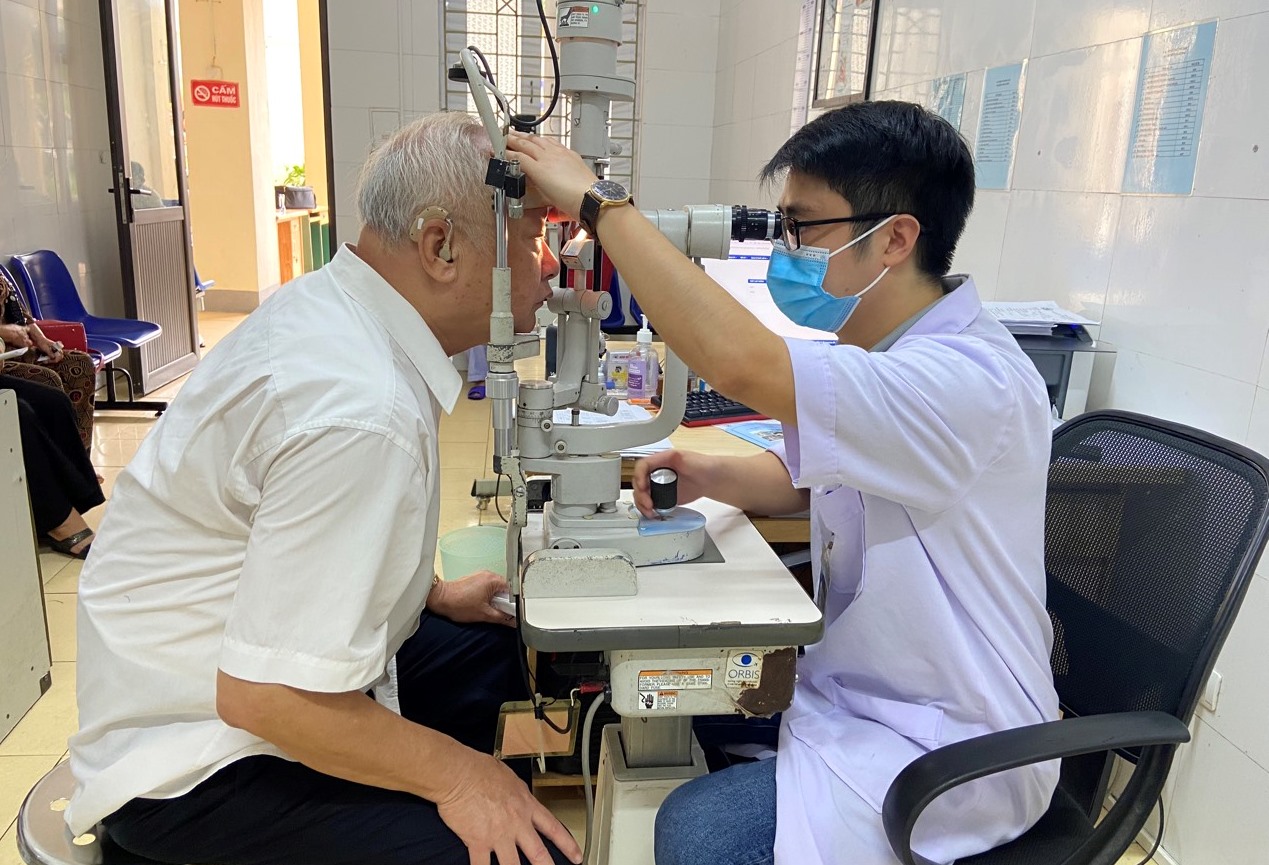 Bác sỹ Bệnh viện Mắt Hà Tĩnh kiểm tra mắt cho bệnh nhân