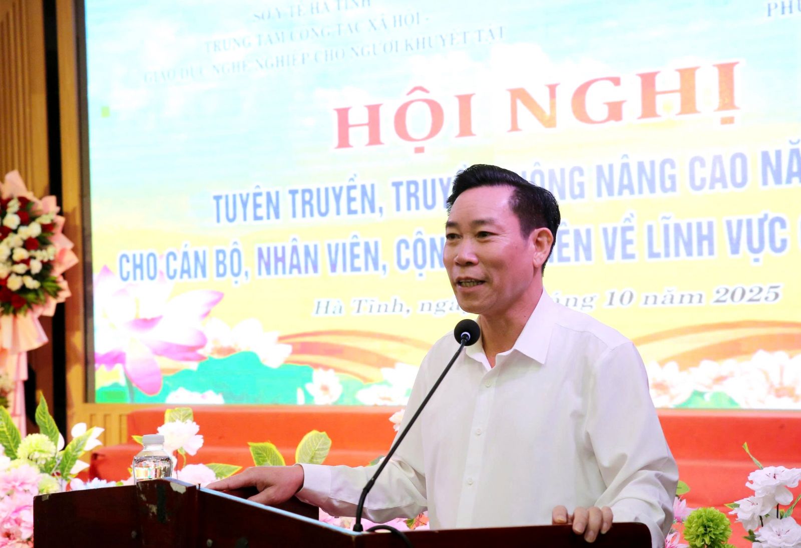 Từ ngày 22 đến 24/10, Trung tâm Công tác xã hội - Giáo dục nghề nghiệp cho người khuyết tật (Sở Y tế Hà Tĩnh) phối hợp với UBND các xã Can Lộc, phường Hà Huy Tập và xã Hương Sơn tổ chức hội nghị tuyên truyền, truyền thông nâng cao năng lực về lĩnh vực công tác xã hội cho gần 600 đại biểu là bí thư, thôn trưởng, chi hội trưởng hội Phụ nữ, hội Nông dân và lực lượng an ninh trật tự cơ sở trên địa bàn. Dự và chỉ đạo hội nghị có đồng chí Mai Lê Thuộc – Phó Giám đốc Sở Y tế Hà Tĩnh.