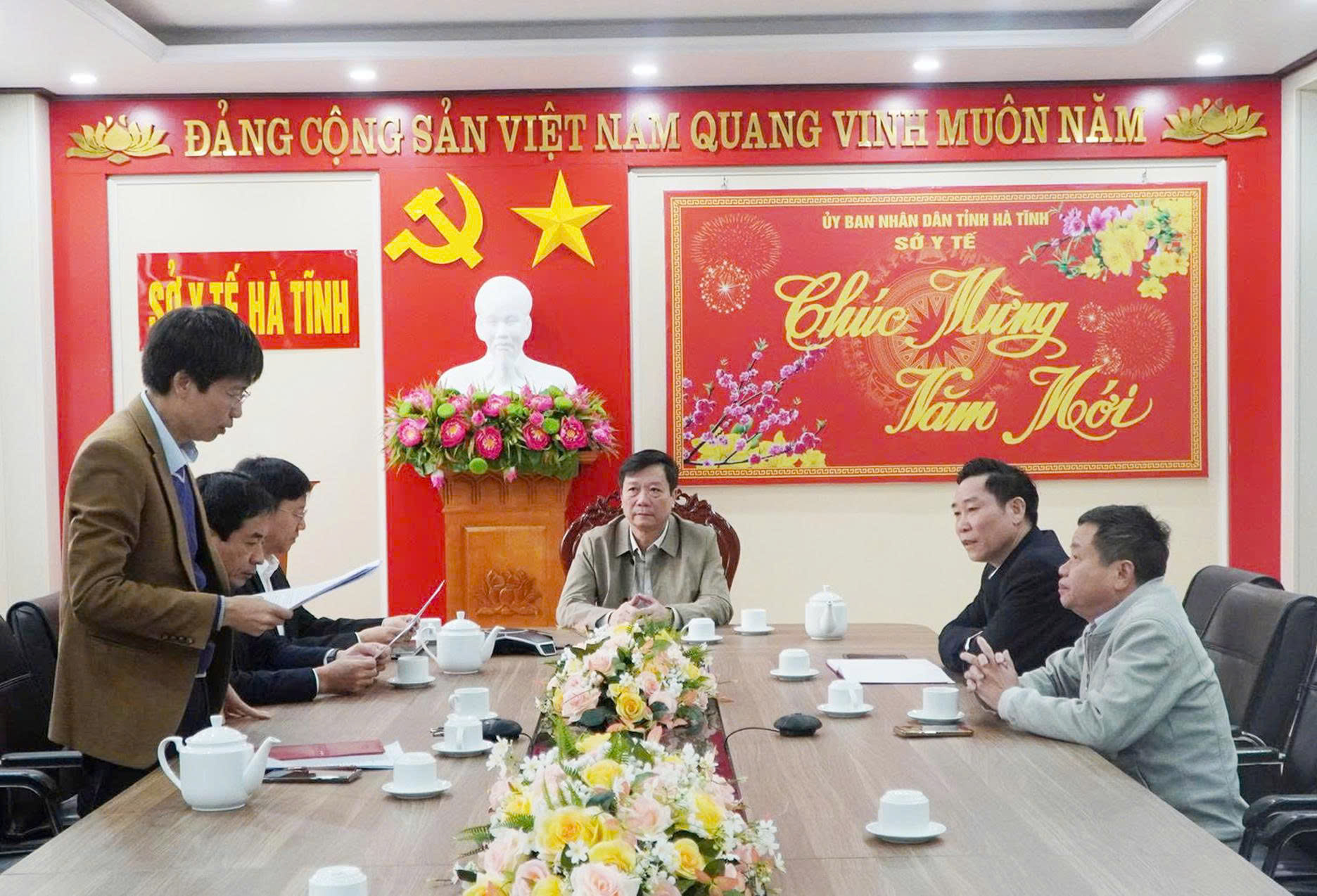 Bác sỹ Nguyễn Minh Đức, TVU, Giám đốc Sở Y tế chủ trì hội nghị tại Sở Y tế