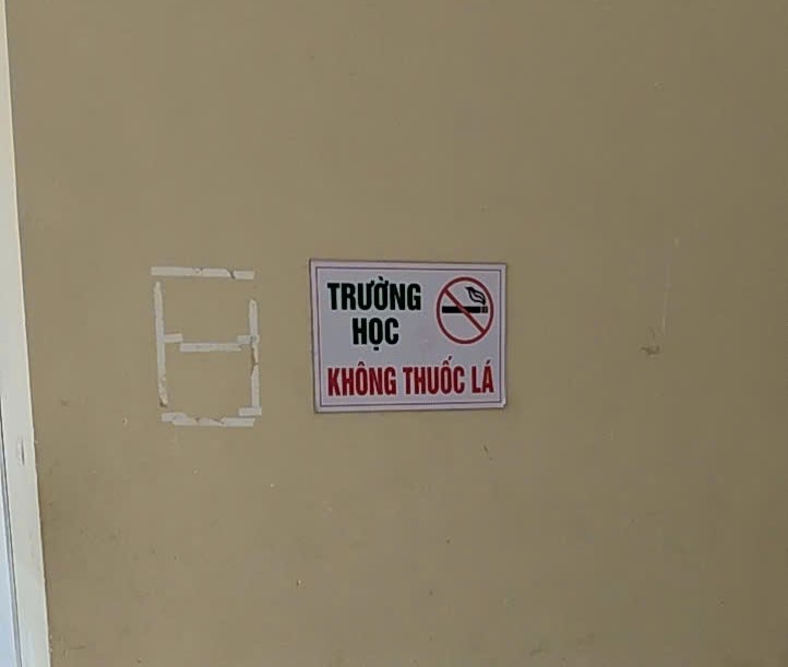 Các biển cảnh báo về cấm hút thuốc lá được nhà trường treo, dán tại các khu vự đông người qua lại để nhắc nhỡ đối với giáo viên, học sinh và khách đến trường