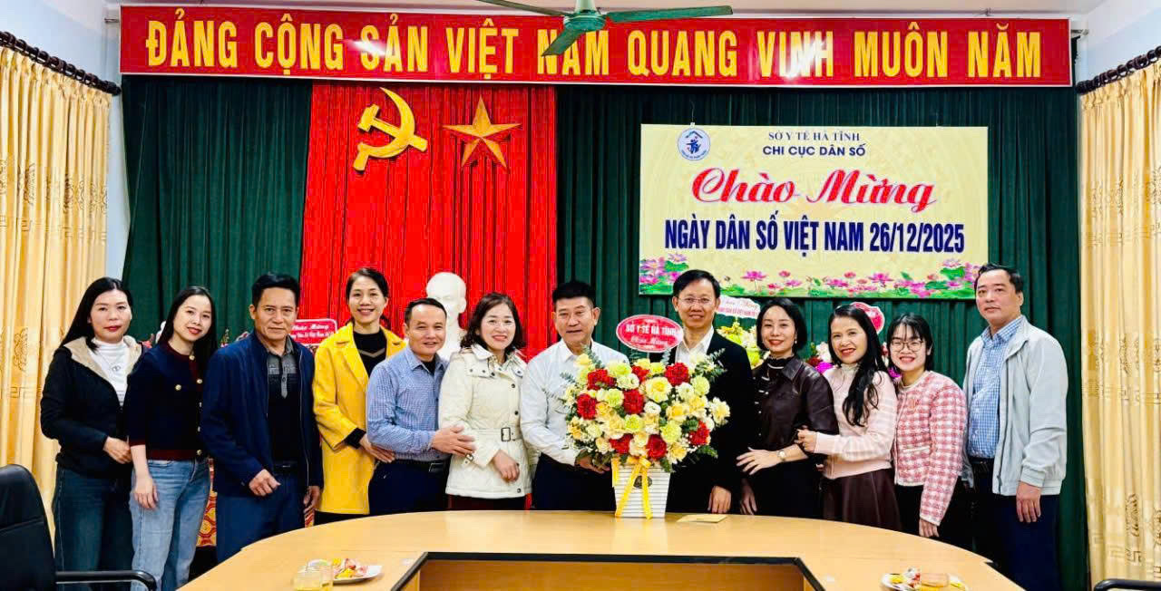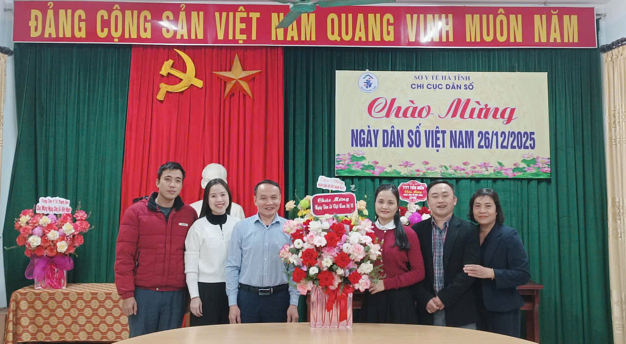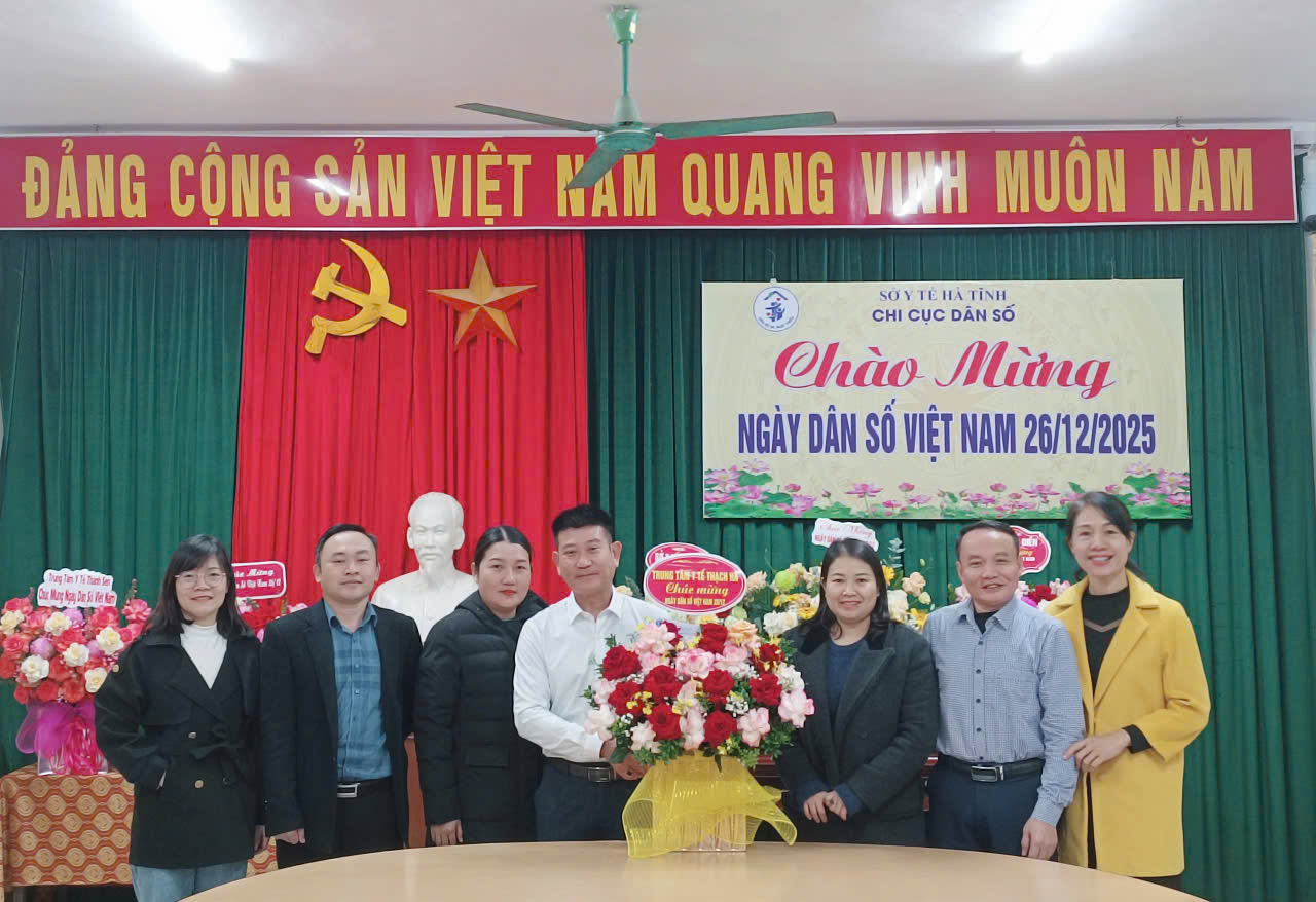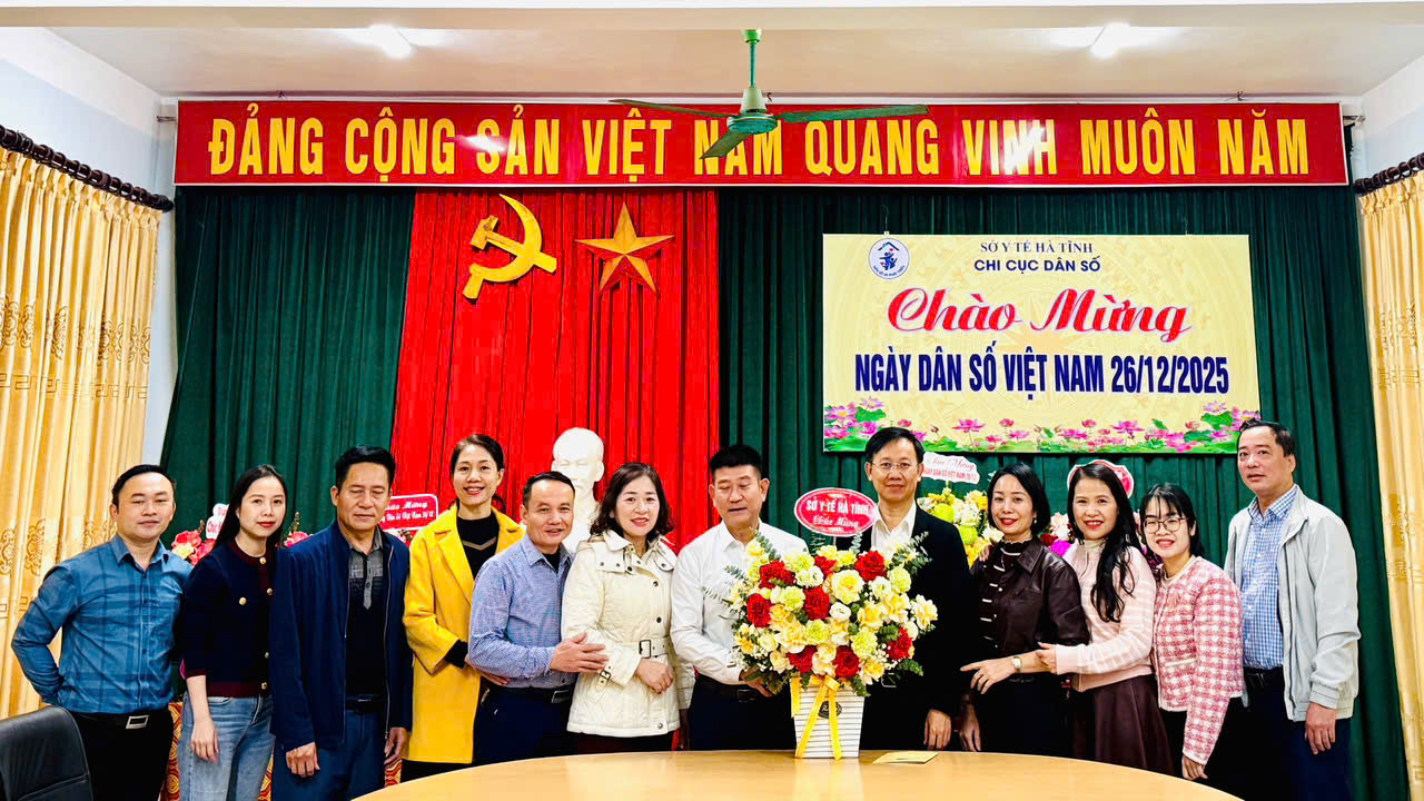 Nhân kỷ niệm 64 năm Ngày Dân số Việt Nam (26/12/1961 – 26/12/2025), sáng 26/12, đồng chí Bùi Quốc Hùng – Phó Giám đốc Sở Y tế Hà Tĩnh đã đến tặng hoa, chúc mừng Chi cục Dân số tỉnh. Cùng đi có đại diện lãnh đạo và chuyên viên một số phòng chuyên môn thuộc Sở Y tế.