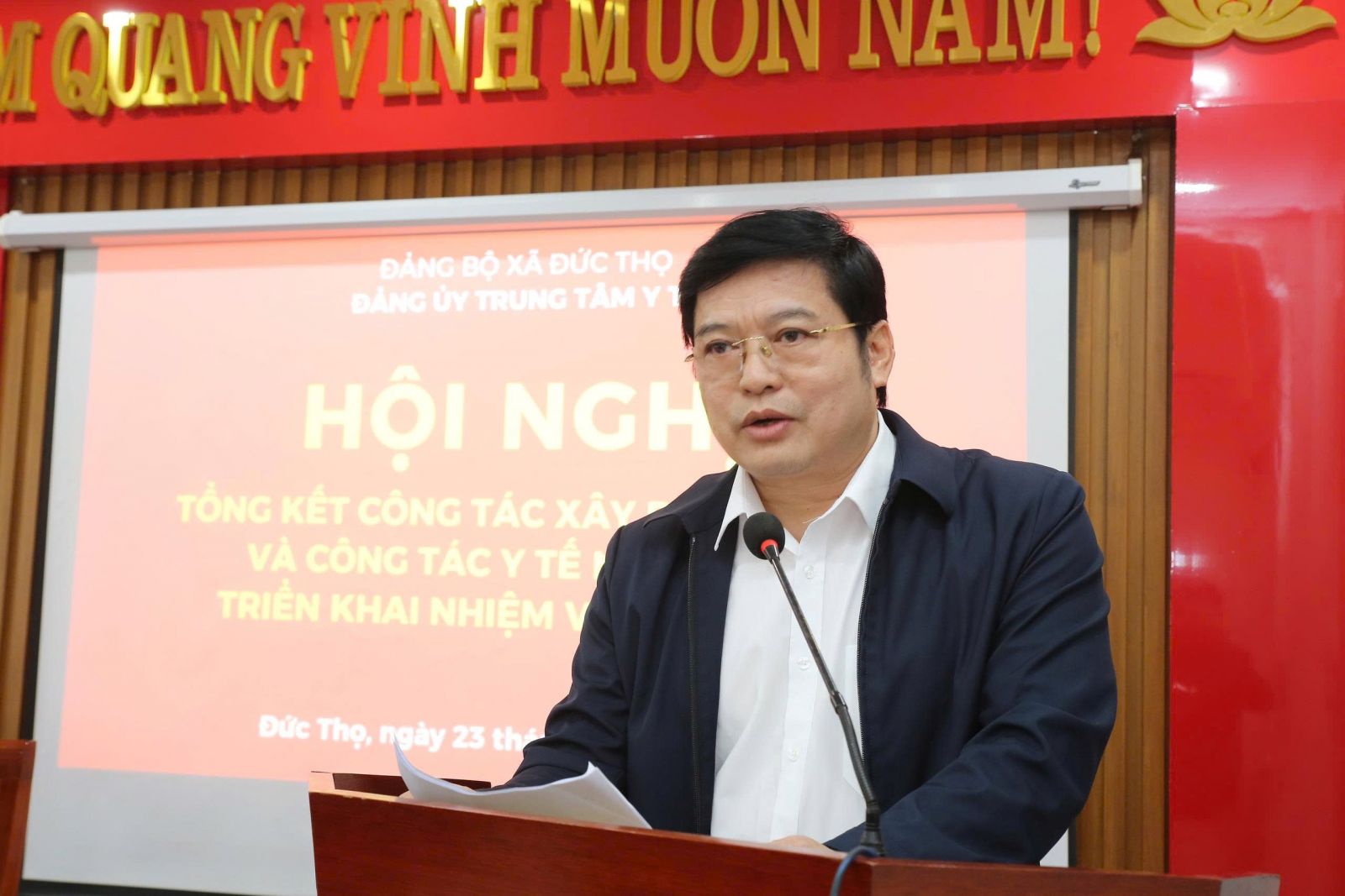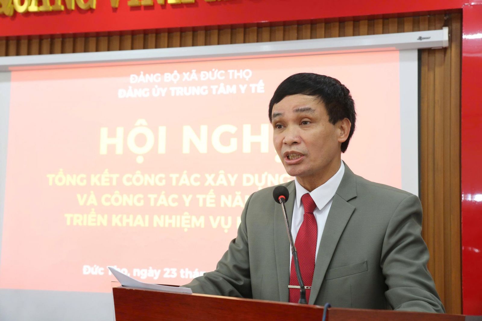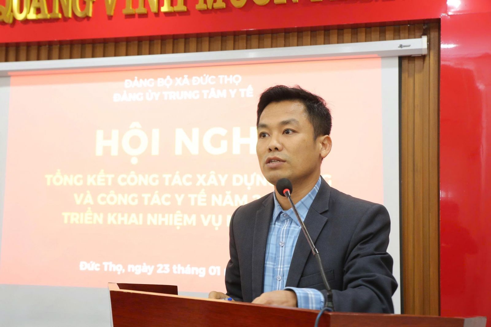 Kết luận hội nghị, BS Nguyễn Đình Thiện – Bí thư Đảng ủy, Giám đốc Trung tâm Y tế Đức Thọ nhấn mạnh các nhiệm vụ trọng tâm năm 2026, trong đó tập trung đổi mới phong cách, thái độ phục vụ; nâng cao chất lượng khám, chữa bệnh; đẩy mạnh chuyển đổi số; phát triển nguồn nhân lực chất lượng cao và nâng cao năng lực quản trị đơn vị.