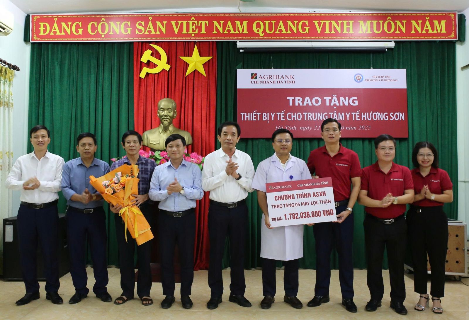 Chiều ngày 22/10, Trung tâm Y tế Hương Sơn tổ chức lễ tiếp nhận 5 máy chạy thận nhân tạo với tổng trị giá gần 1,8 tỷ đồng do Agribank - Chi nhánh Hà Tĩnh tài trợ. Tham dự lễ trao tặng có lãnh đạo Sở Y tế, Agribank - Chi nhánh Hà Tĩnh, lãnh đạo xã Hương Sơn.